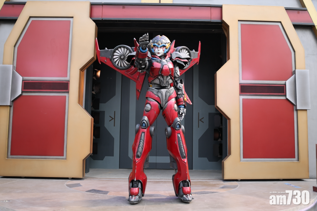 女性變形金剛「風刃」首次亮相與遊客互動。(互聯網)