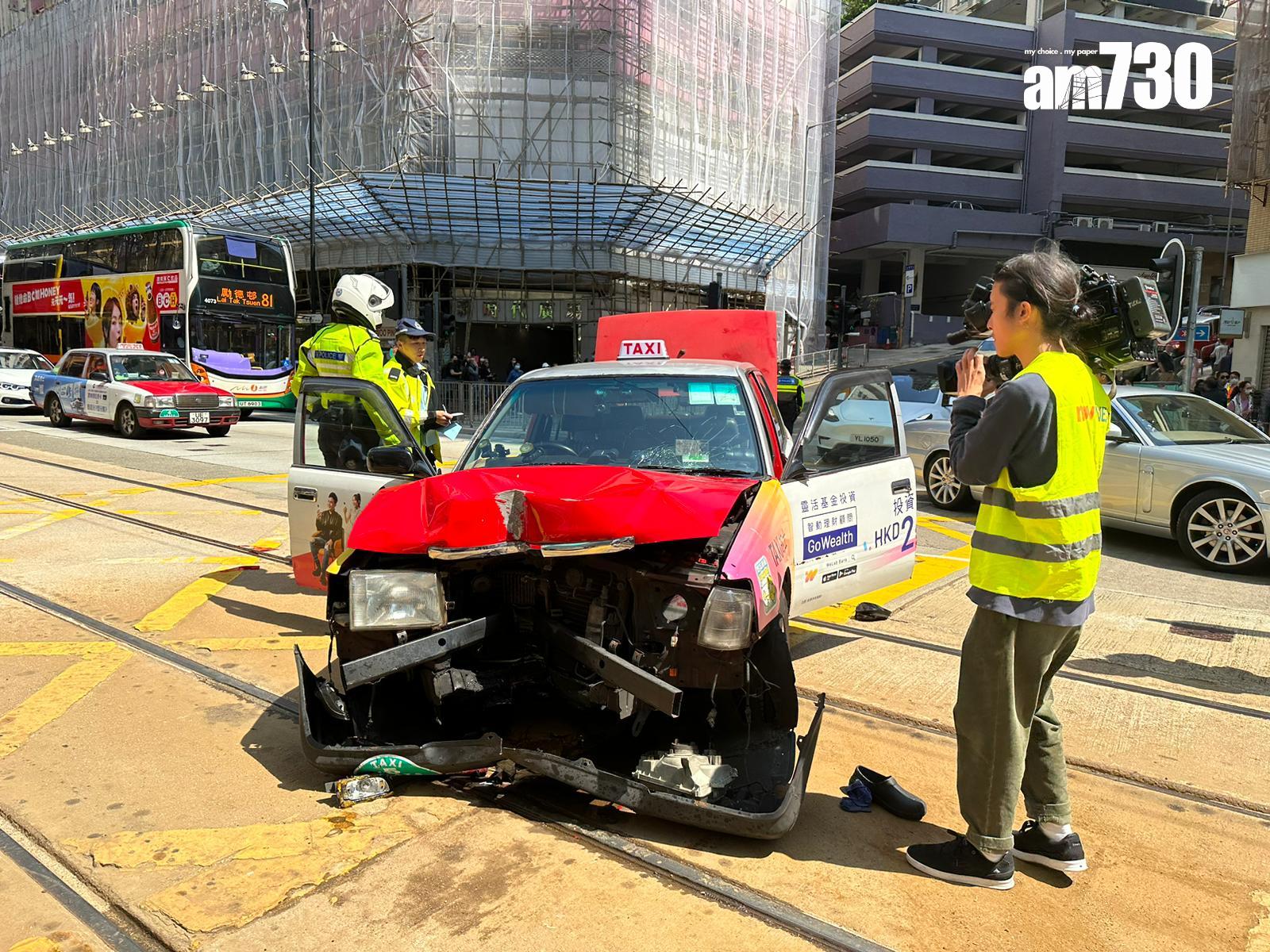 拖車將肇事的士拖離現場。(文詠琛攝)