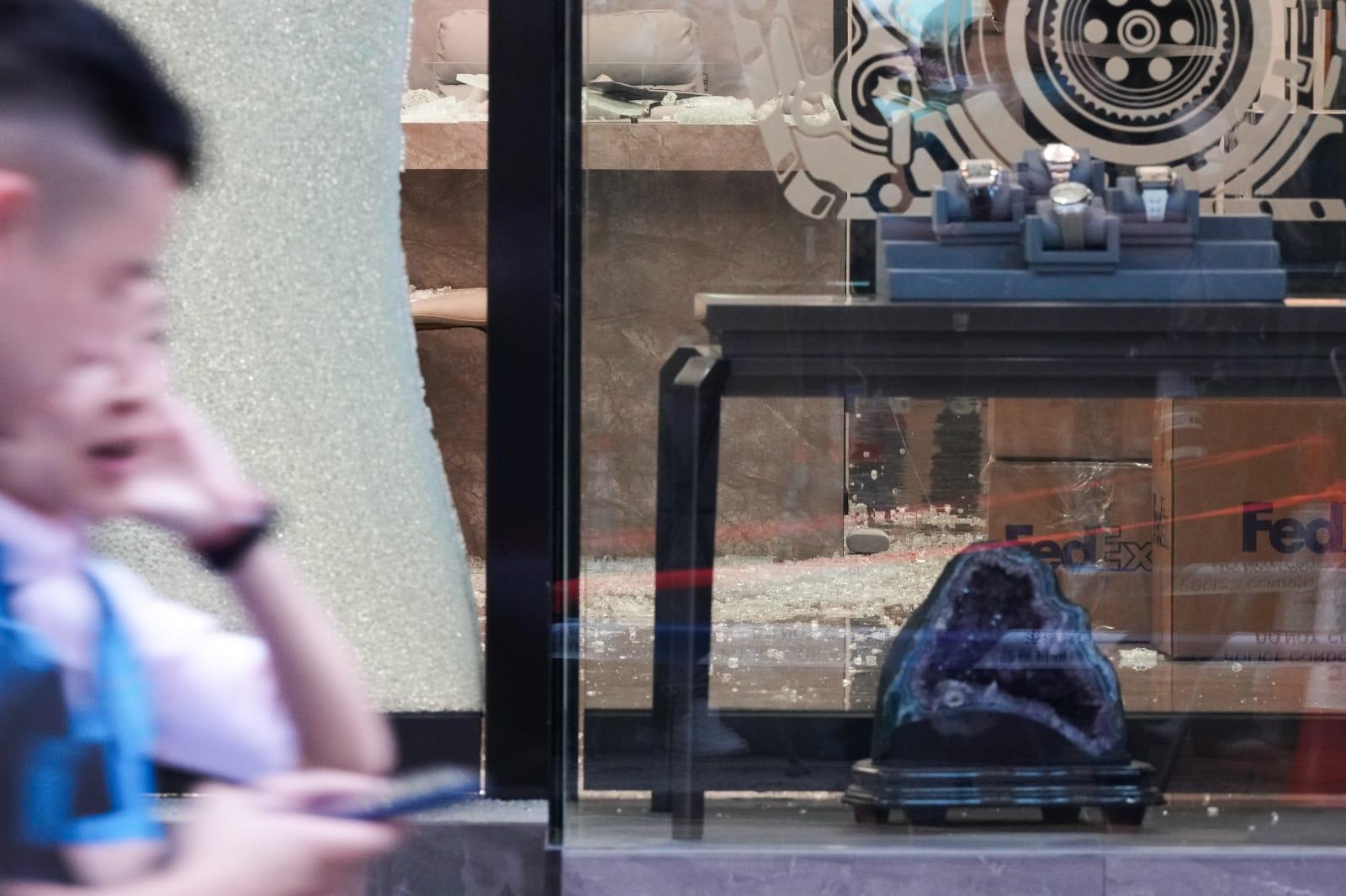據悉,整個搶劫過程僅約2至3分鐘,其中1人假扮客人按鐘,待職員一開門,另外3人隨即闖入,以兩把西瓜刀指嚇職員,並以鐵槌扑爆飾櫃,隨即掠去一批名錶後,登上一輛銀色私家車,往漆咸道南方向逃去。