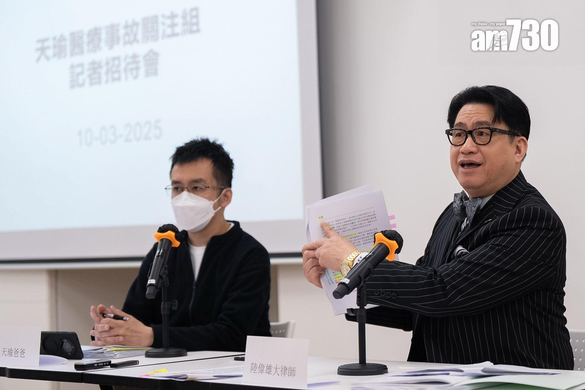 周天瑜醫療事故|周父(左)在大律師陸偉雄陪同下首次開記者會,要求召開死因庭跟進事件。(林靄怡攝)