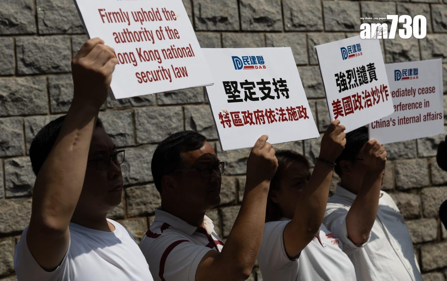 周浩鼎聲言美國介入可將國安案件「送中」 民建聯工聯會美領抗議制裁高官法官(蘇文傑攝)