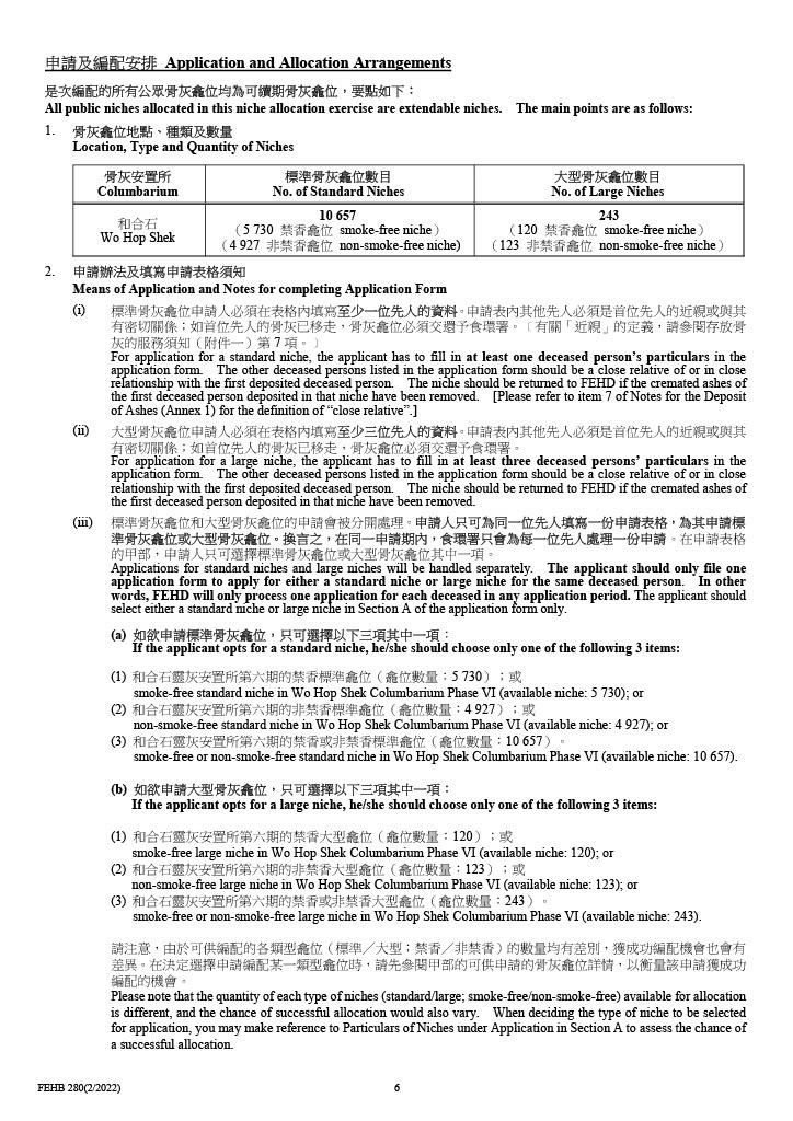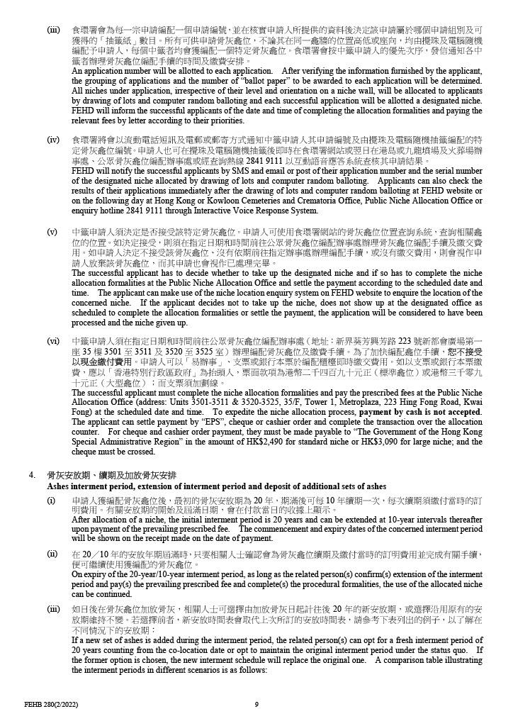 當中市民可瀏覽食環署網站了解詳情及下載申請表格(按此下載),或到食環署港島或九龍墳場及火葬場辦事處、各分區環境衞生辦事處,以及民政事務總署各區民政諮詢中心,索取簡介單張及申請表格。當中可致電2841 9111或以電郵查詢,及以傳真索取申請表格。