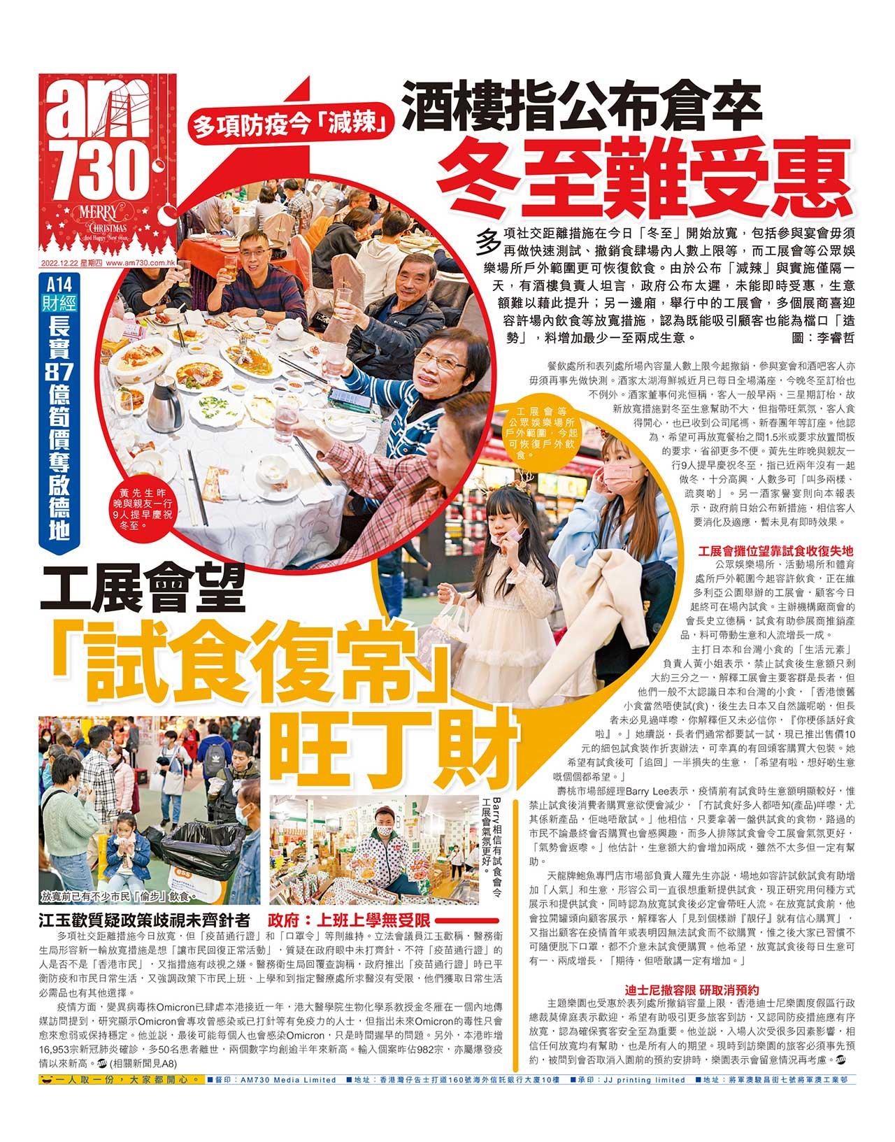 多項防疫今「減辣」酒樓指公布倉卒冬至難受惠 工展會望「試食復常」旺丁財