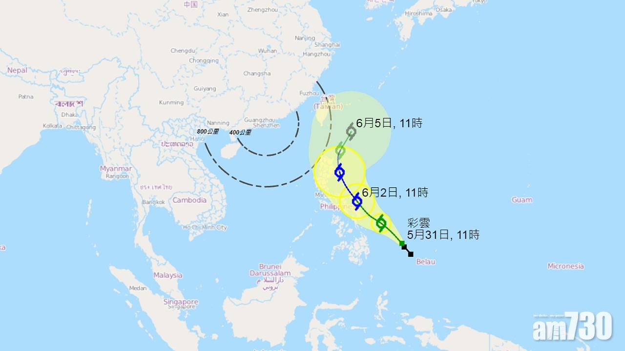 天文台表示,熱帶低氣壓「彩雲」已增強為熱帶風暴。在下午1時,「彩雲」集結在馬尼拉之東南偏東約1210公里,預料向西北移動,時速約18公里,在未來兩三天橫過菲律賓以東海域,並繼續增強。