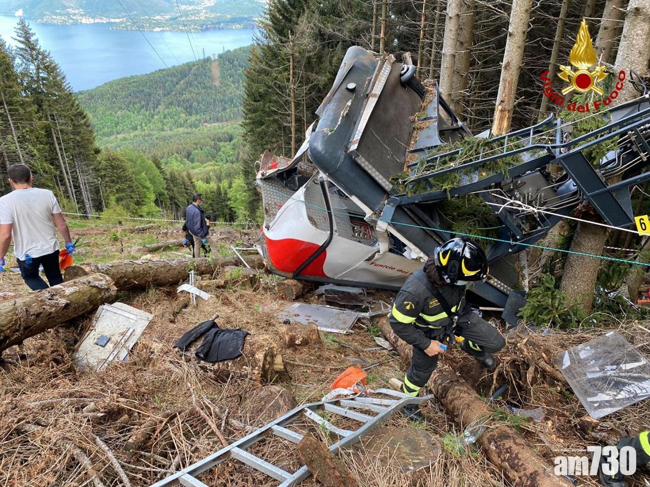 意大利北部阿爾卑斯山景區周日發生奪命意外,一輛載送遊客往莫塔羅納(Mottarone)山頂的纜車墮地,死亡人數增至14人,僅得1名乘客生還。