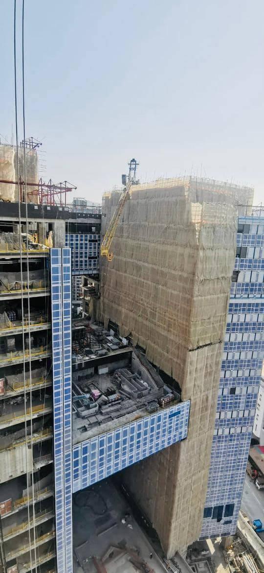 將軍澳唐賢街入境處新總部大樓地盤,今早約10時半有天秤倒塌,懸掛半空,暫時未知是否有工人受傷。有網民上載天秤倒塌,懸掛半空的相片到Facebook群組,可見天秤位於地盤高處,搖搖欲墜。