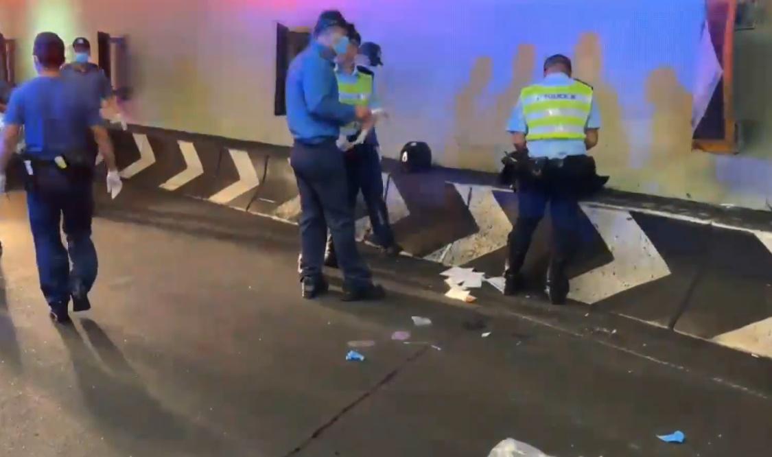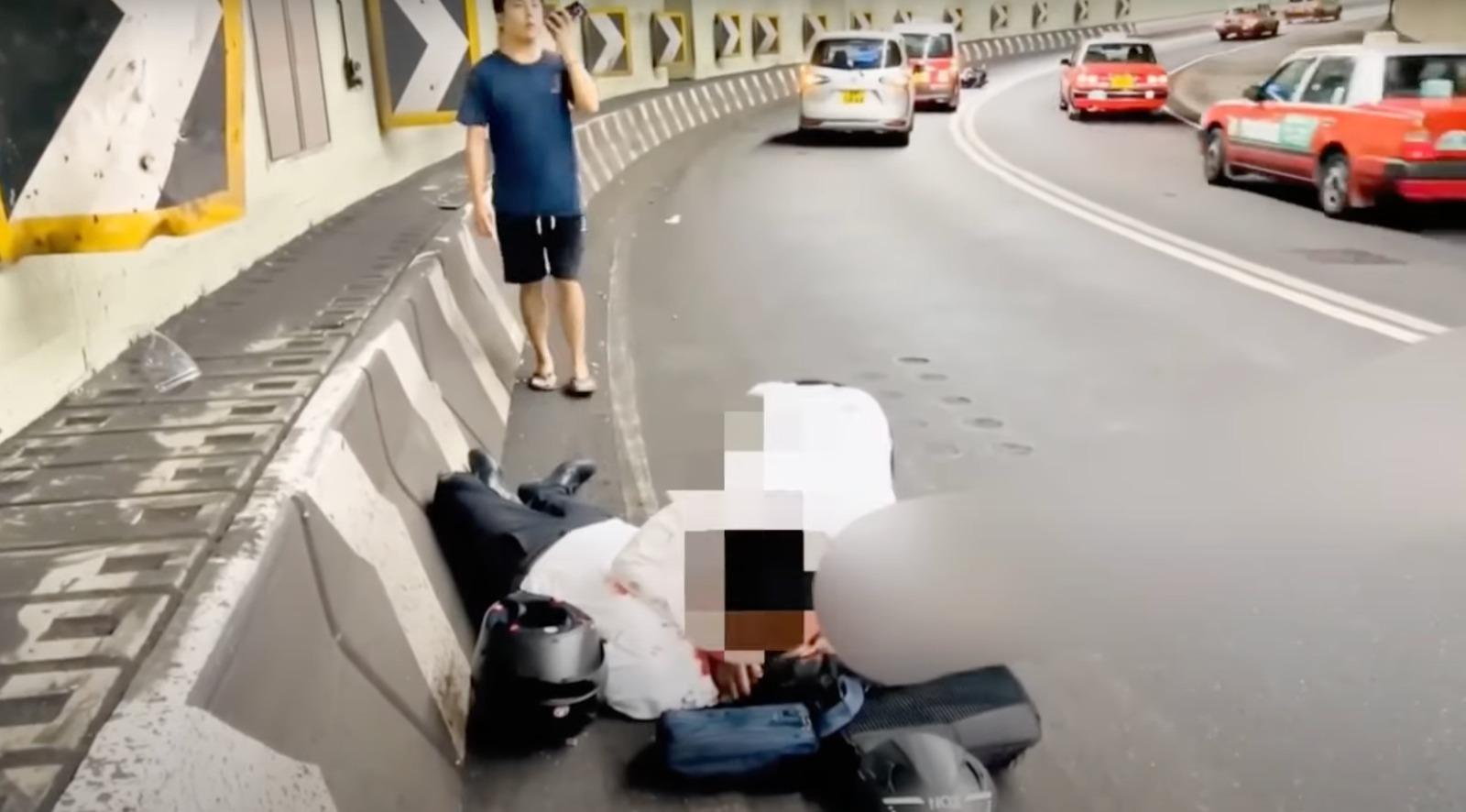 今日(10日)凌晨零時許,一名31歲姓鄭鐵騎士駕駛一輛本田電單車沿尖沙咀連翔道地下行車道往西隧方向落斜,駛至一個右彎時懷疑失控「自炒」,猛撼向左邊石壆和急彎路牌,電單車則滑行約35米始停下。鐵騎士和33歲石姓男乘客雙雙倒地受傷。多名途經駕駛人士見狀均報警求助。