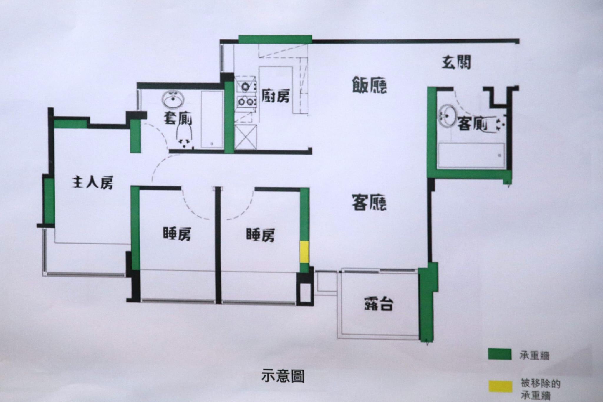 余寶美說,業主、設計師及施工公司等均須負責。她表示,施工方沒可能不清楚拆除的地方,因主力牆較厚,從結構圖則可看到主力牆位置;若需拆除,則可以向屋宇署申請,透過申請以準確計算會否對整體樓宇結構有影響。
