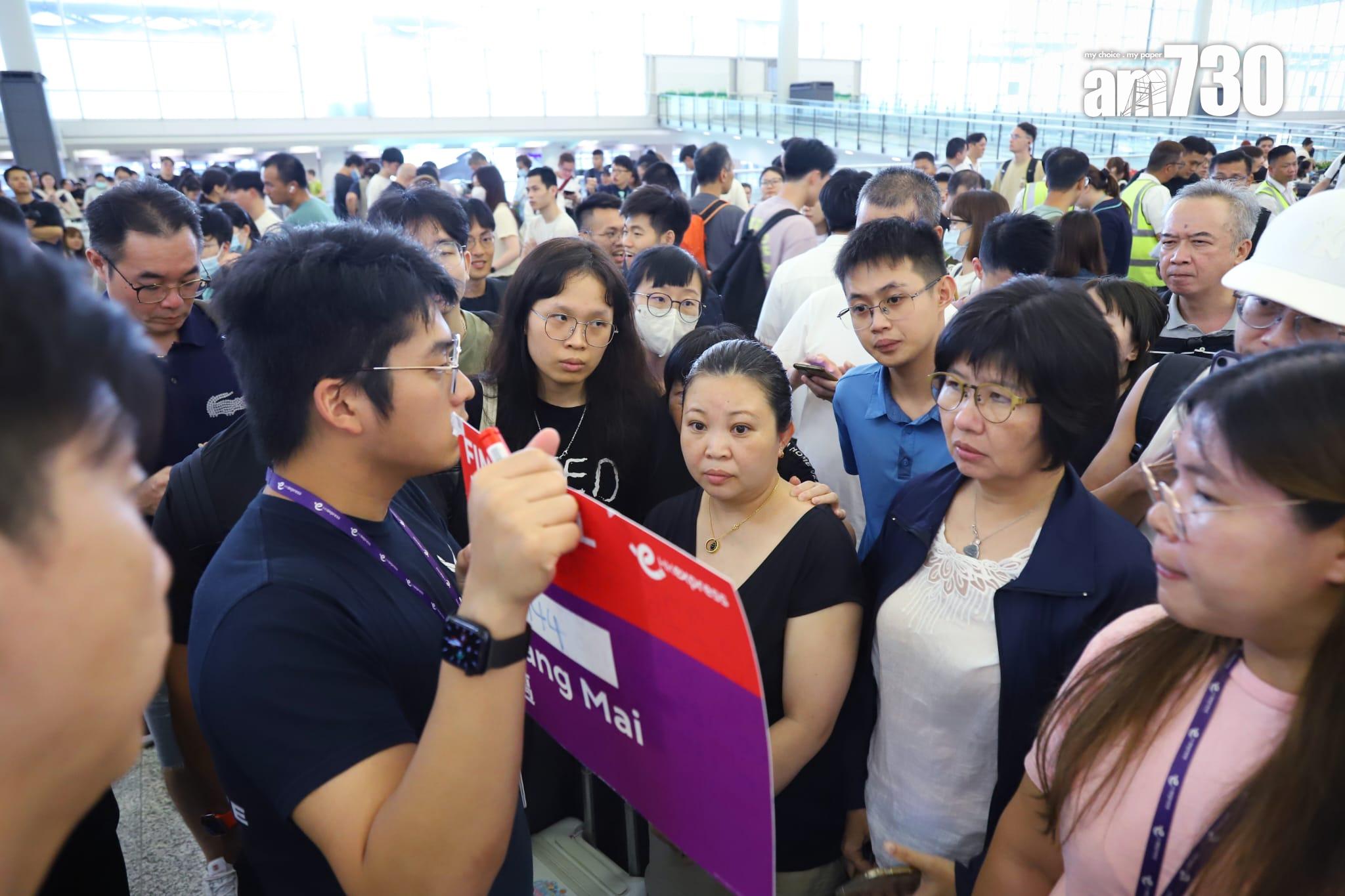 現時機場有職員在HK Express櫃台外正實施人潮管制,設置鐵欄及疏導旅客,旅客需要先檢查資料才獲放行入內辦理登機手續,未夠鐘登機乘客則要在外排隊等候。有乘客指由到達機場至完成登記時間用了約1小時,較預期時間快。有受事故影響旅客指,一家大小原定昨晚大約8時飛往寧波,但航班延誤至今日清晨,要租住酒店,小朋友亦要凌晨起身,凌晨4時許到達機場而感到有點辛苦。亦有原定昨晚8時前往布吉的外國旅客,因航班延誤至今早,心情受到影響。