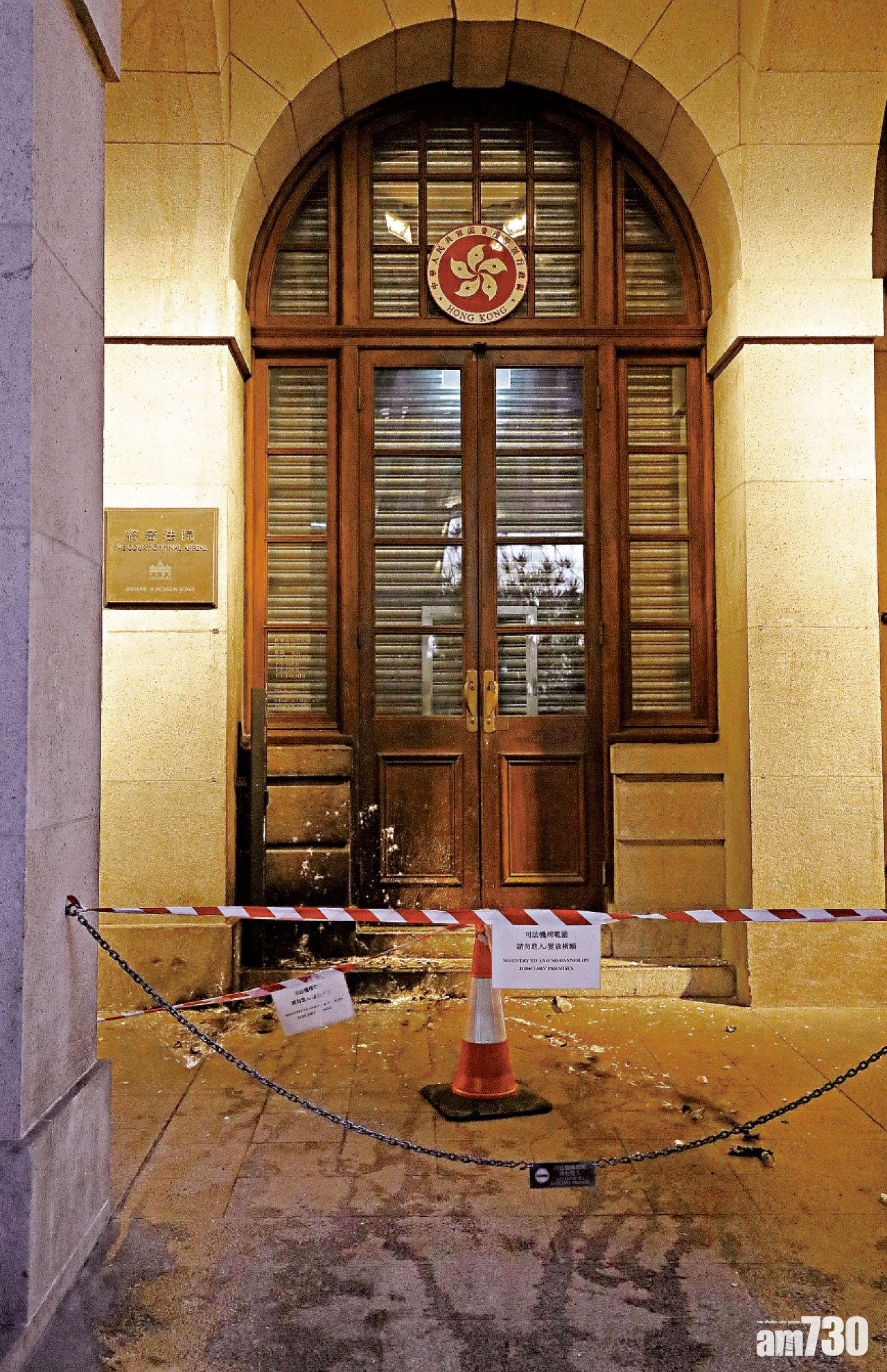 終審法院昨繼續開放,正門仍有被熏黑痕跡,終院首席法官馬道立回應傳媒查詢時說「無補充」。