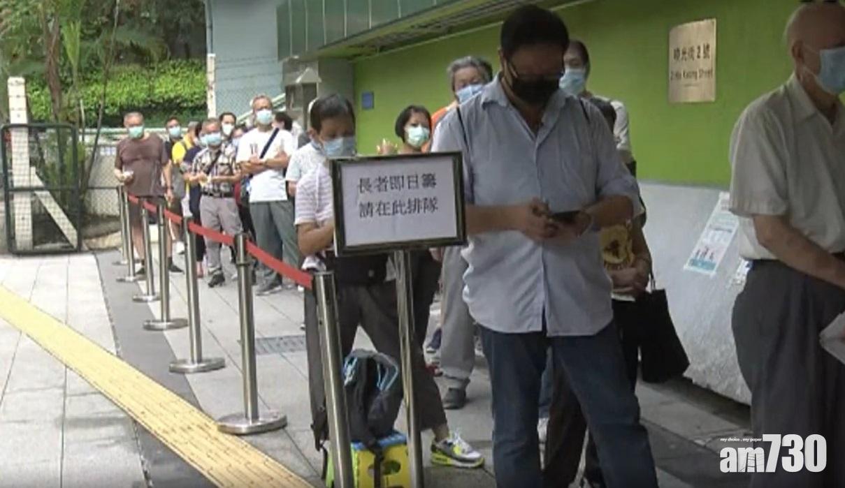 「即日籌」今日起擴展至60歲或以上人士,有市民一早到社區中心排隊拿籌。(新聞截圖)