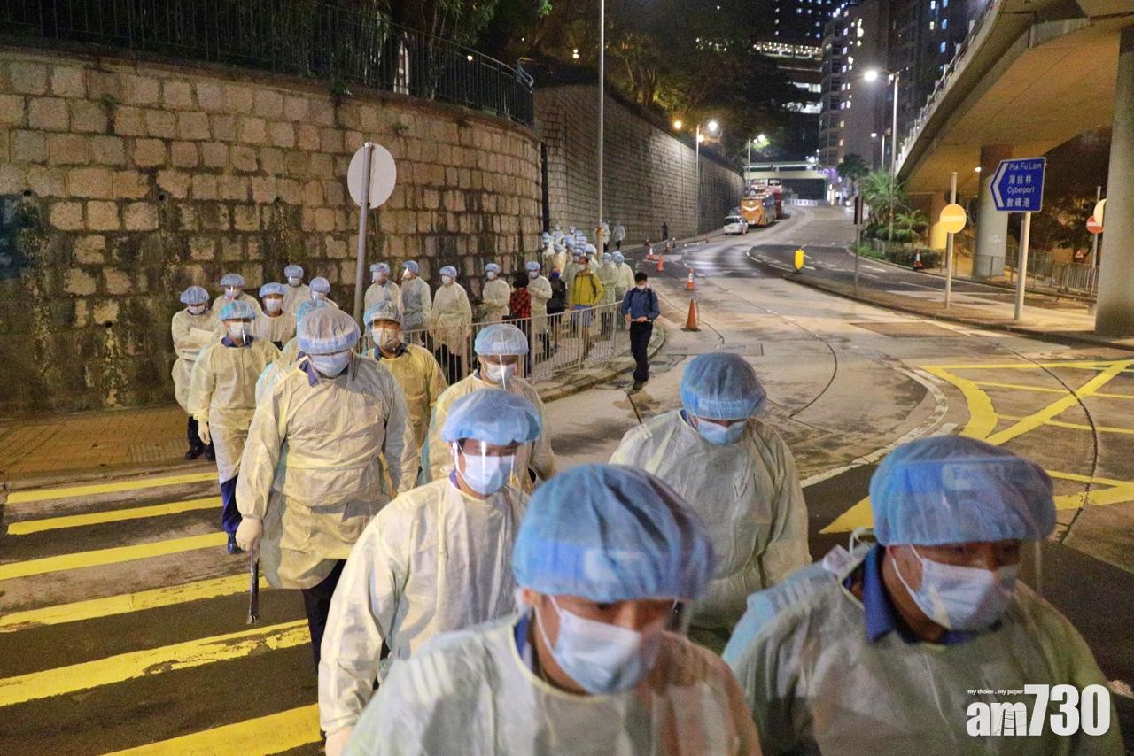 中西區今晚再有突襲「封區」行動,西營盤薄扶林道URSUS Fitness一帶及舊山頂道帝景園,晚上7時起被列為受限區域,範圍內人士須留在其處所並接受強制檢測,直至區內所有已識別的受檢人士完成測試,行動目標明早7時完成。在薄扶林道的封鎖區,居民晚上約9時開始陸續落樓輪候做測試。