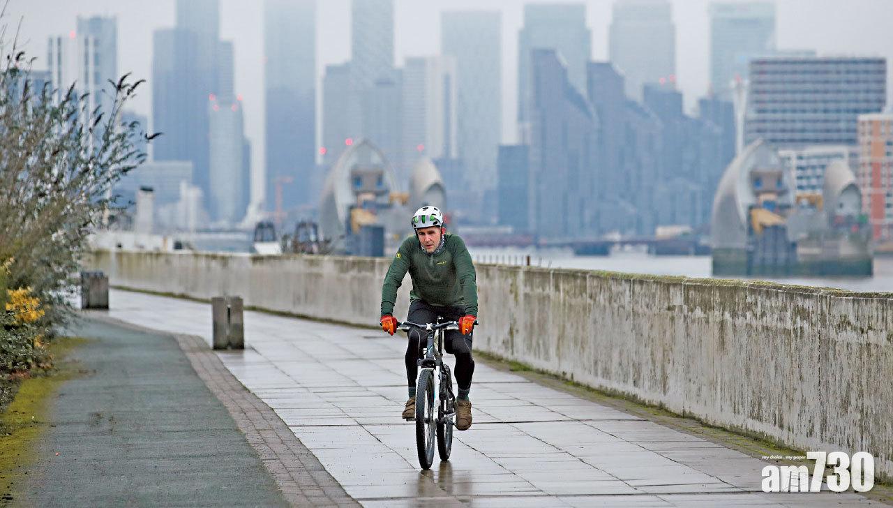 英國疫情嚴峻,倫敦有民眾在戶外踩單車時沒戴上口罩。