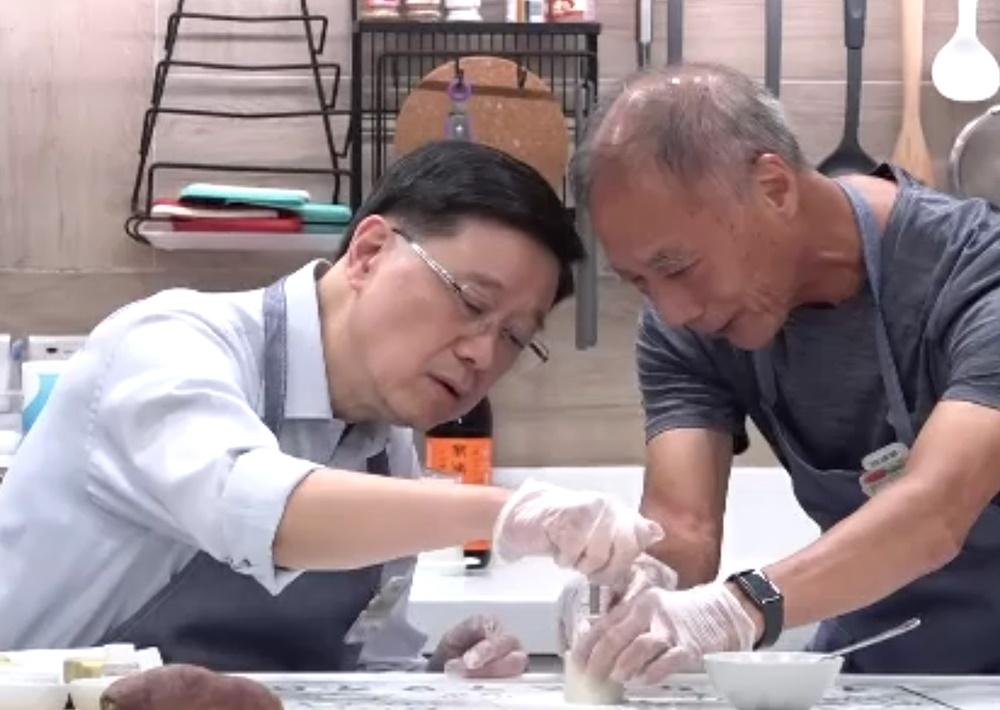 李家超笑言自己是「小學生」,所做的月餅有50分。(RTHK)