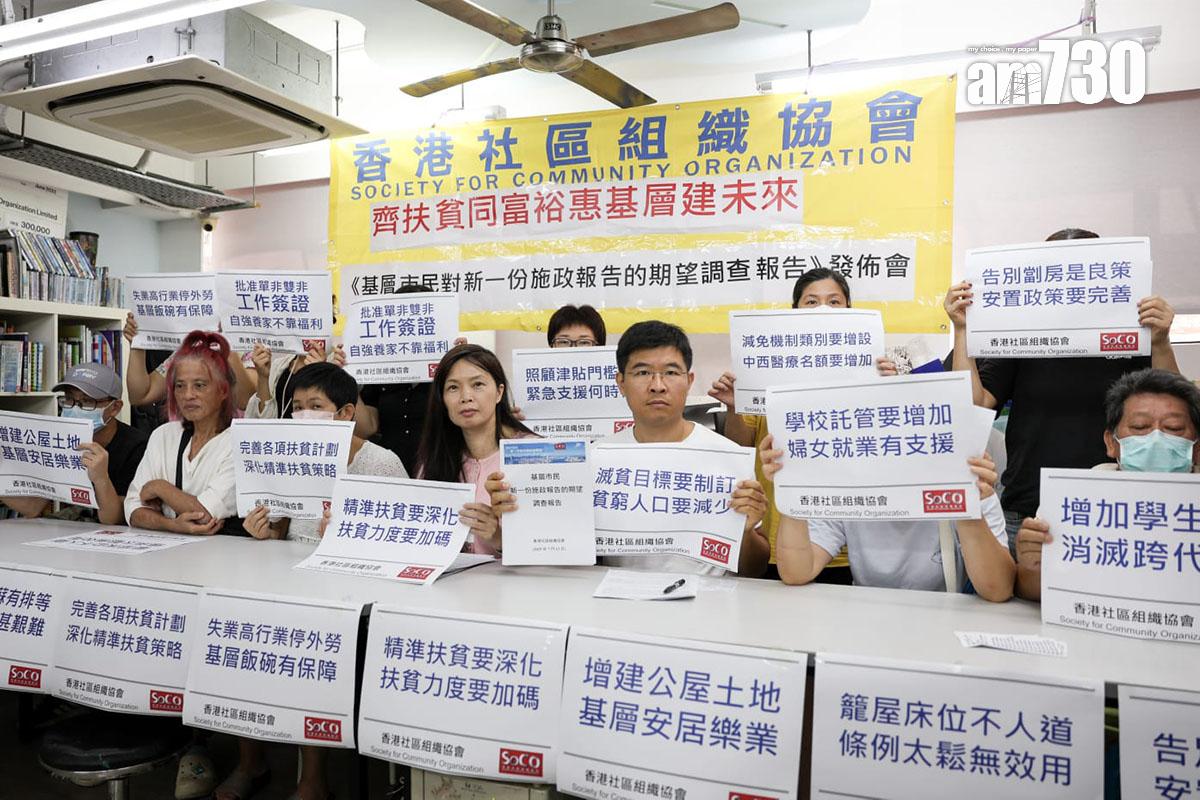 政府新一份《施政報告》提前至9月發表,社區組織協會訪問逾300名基層後提交建議,認為政府應在房屋、就業和扶貧三大方面,作出改善及推出大型合需要的扶助措施,指出當就業出現問題,收入已微薄的基層收入會再下降,生活困難的只會變得更加困難,繼而產生更多家庭及社會問題。