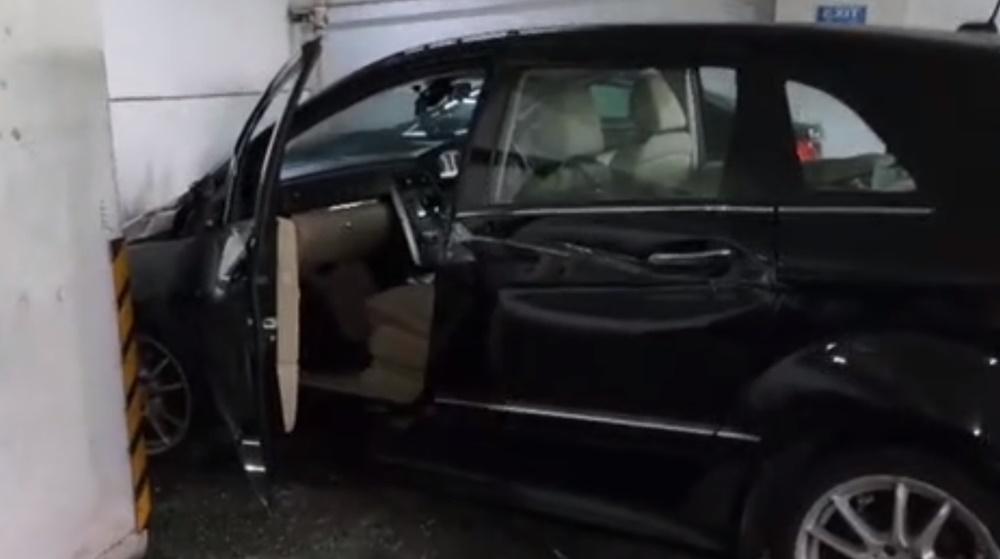 旺角富榮花園停車場平台車窗損毀, 揭男司機醉駕撞車不顧而去。(Google Map)