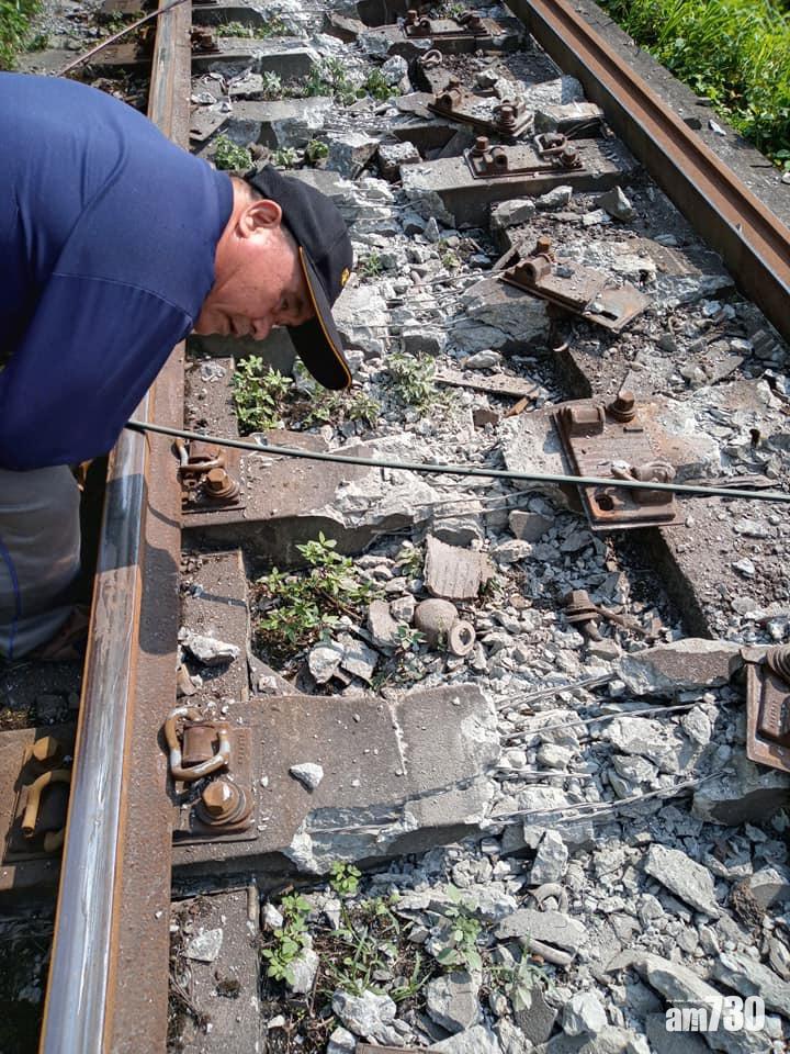 工作人員檢查損毀的路軌。(阿美族的歌fb圖)