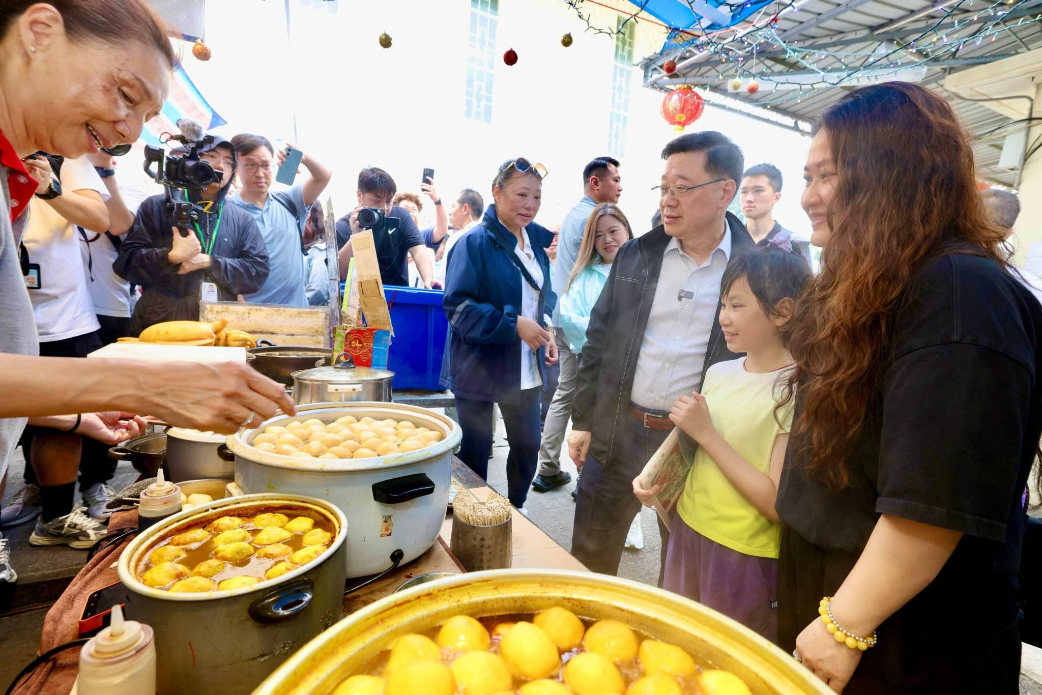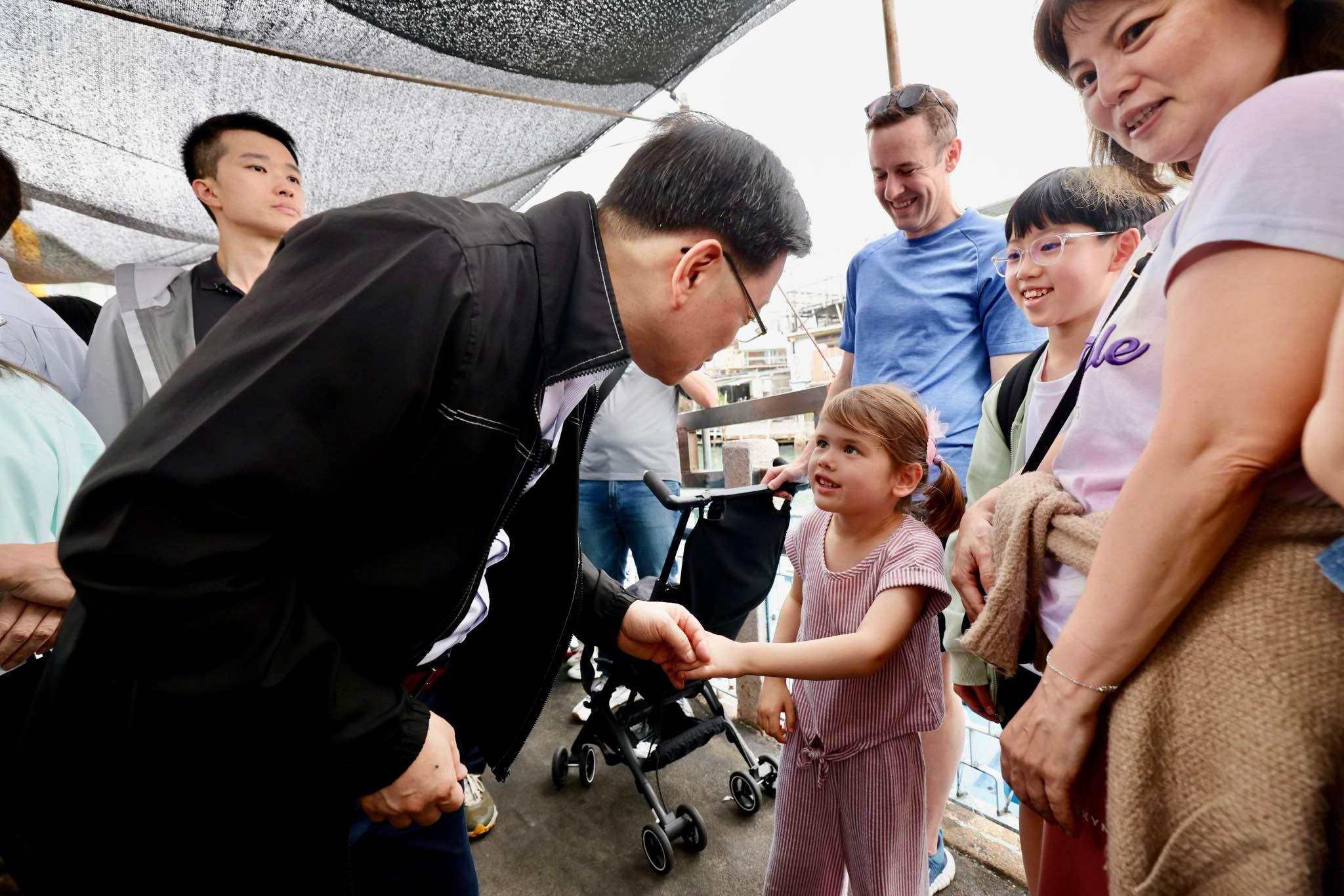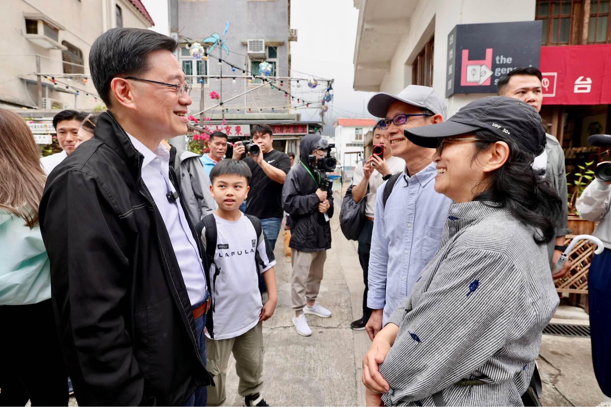 行政長官李家超昨日在復活節長假期首日,到大澳落區視察。李家超與街坊及遊客聊天,指會繼續發展不同的旅遊資源,以吸引更多海內外旅客前來香港,感受香港與別不同的風情風貌。