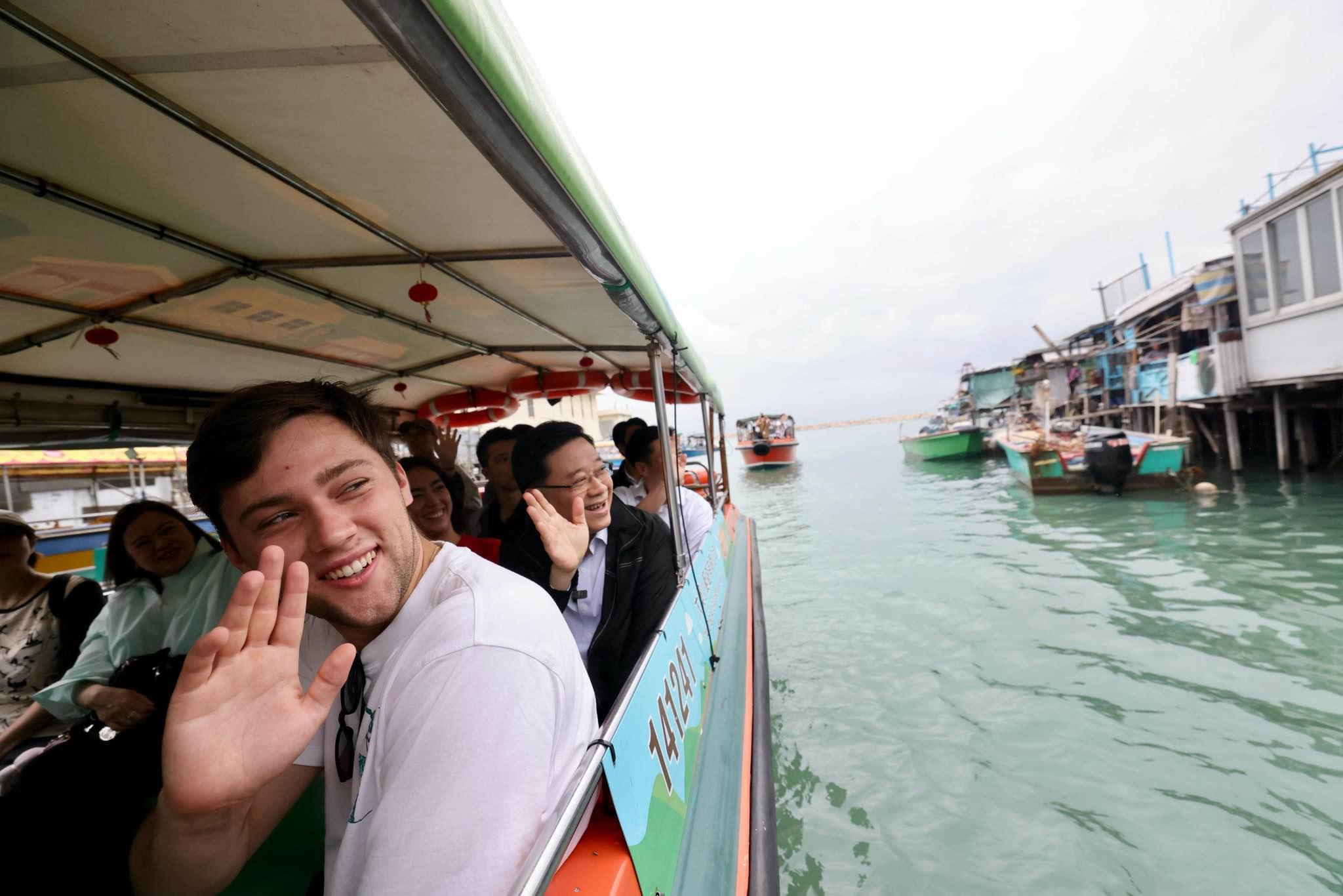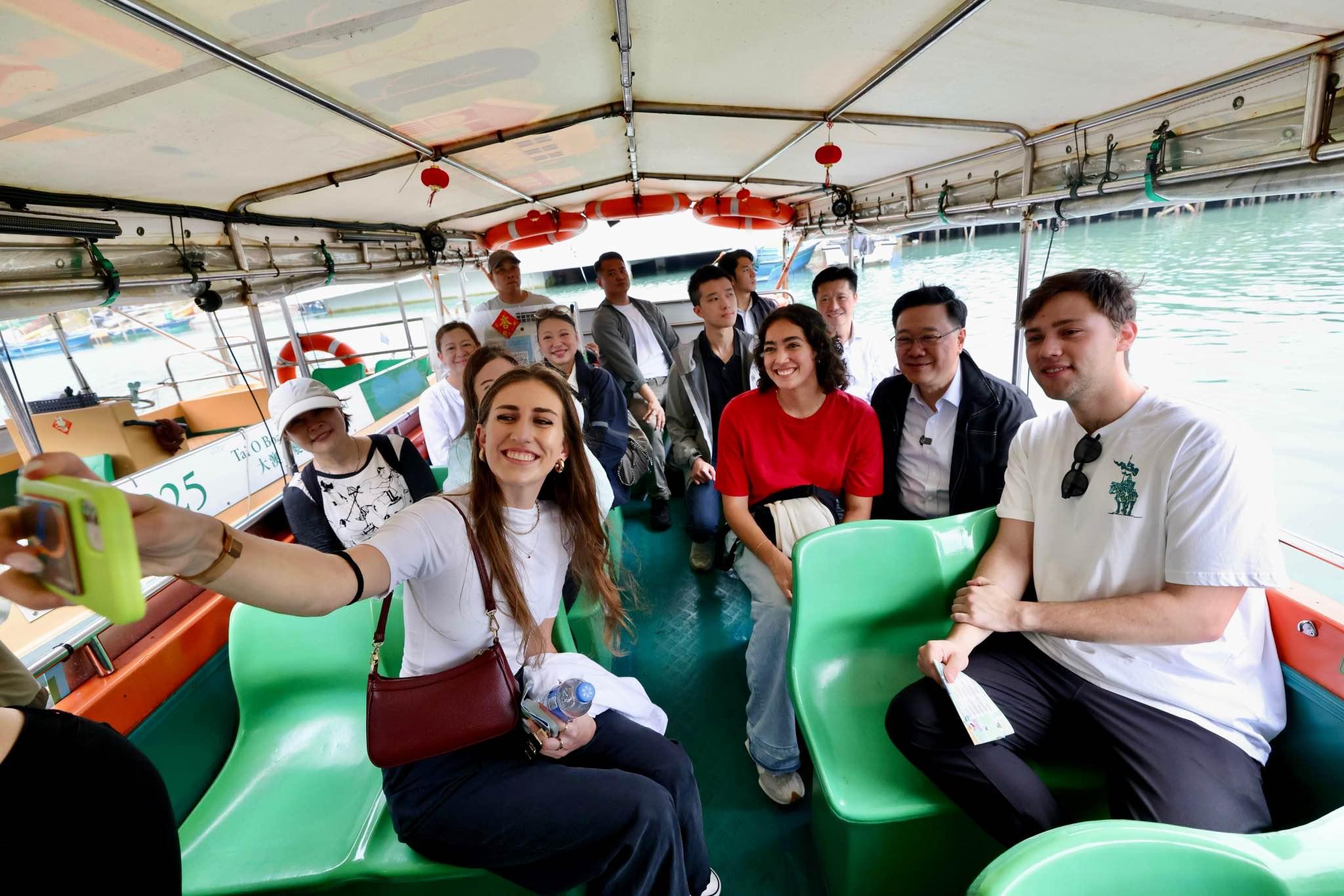 李家超今日在社交網站發文,指昨日在文化體育及旅遊局局長羅淑佩和民政及青年事務局局長麥美娟陪同下走進大澳,一同感受「東方威尼斯」的水鄉風情。他沿途與街坊和店主打招呼,更與一些外國留學生同乘小艇,欣賞大澳水上棚屋的美景。李家超與旅客品嚐大澳地道小吃,以及在酒吧輕談淺酌。旅客向他表示,除了喜歡香港繁華城市生活外,也熱愛深度遊,認識香港本地多元文化,像大澳這些山光水色的小區,讓他們感覺愜意。另外,李家超特意選購本地製造的海味乾貨,支持地區經濟。