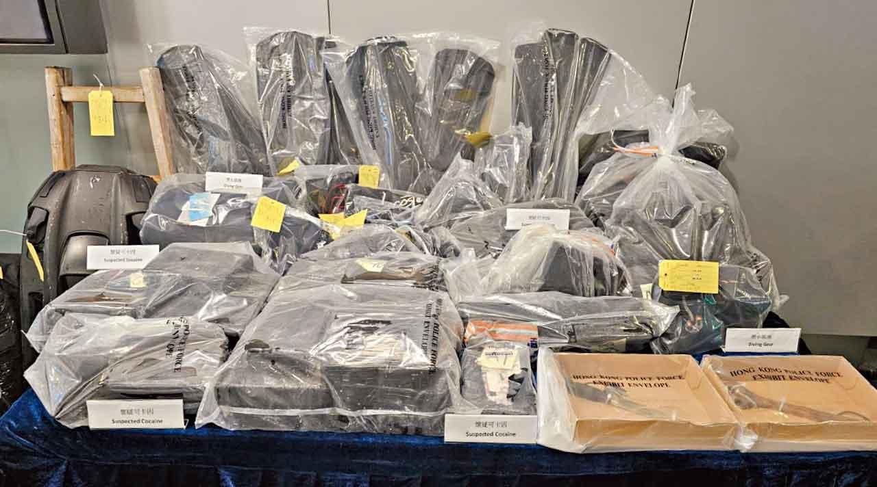 販毒集團為逃避執法部門無所不用其極。集團成員將毒品偷運入境後,將毒品「石沉大海」方式儲存,之後再安排潛水員打撈上岸「出貨」。警方經情報分析和調查揭發案件,並於日前展開行動,檢獲潛水裝備和黑市值4,200萬元可卡因,拘捕3名男子,並正追緝兩名在逃人士。這是警方首次發現販毒集團利用近岸水域暫存毒品。