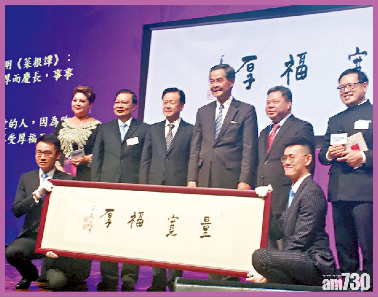 民建聯過去2次籌款晚會,時任中聯辦主任的張曉明都會親書墨寶供民建聯拍賣,2年前的「度德而處」以天價1,880萬元賣出。外界關注現任中聯辦主任王志民會否蕭規曹隨,最終他並無捐出物品拍賣,同時亦無現身,改由何靖獻唱。至於張曉明雖已調任港澳辦主任,但他捐出「不忘初心 牢記使命」郵票珍藏冊,並親筆題詞寫上「中國夢裡有香港同胞的事業夢、家庭夢、幸福夢」,最終以220萬元賣出。另外,港區人大王庭聰捐出已故國學大師饒宗頤墨寶「量寬福厚」,由政協常委許榮茂以1千萬元投得。未計賣枱收益,單是拍賣及表演,估計全晚共籌得約6千萬元。