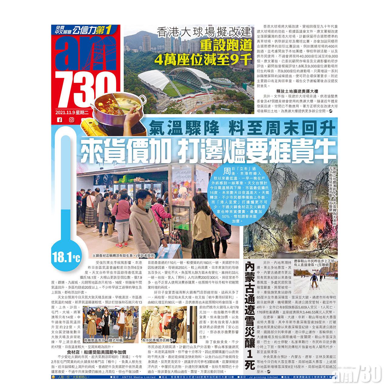 周日「立冬」過後,本港昨錄入秋以來最低溫,一早一晚在戶外終感到一絲寒意。天文台預計今日氣溫稍再下降,市區最低攝氏16度,未來數天日夜溫差大。天氣轉涼,不少市民都準備換上冬裝,而「港人至愛」打邊爐更不可少,不過火鍋食材店及火鍋酒家也呻來貨價貴,最貴加50%,惟怕趕客未敢加價。
