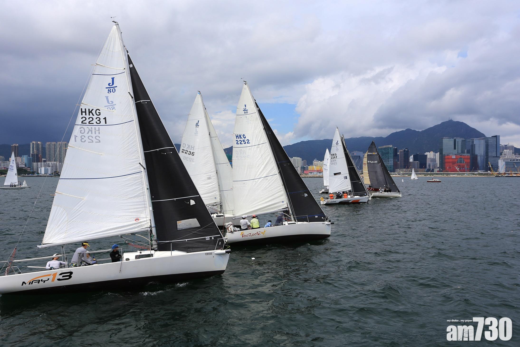 香港遊艇會的「秋季帆船賽」周日兩場賽事在碧海南天下展開,為2020-2021年的帆船賽季打響頭炮。(香港遊艇會提供)