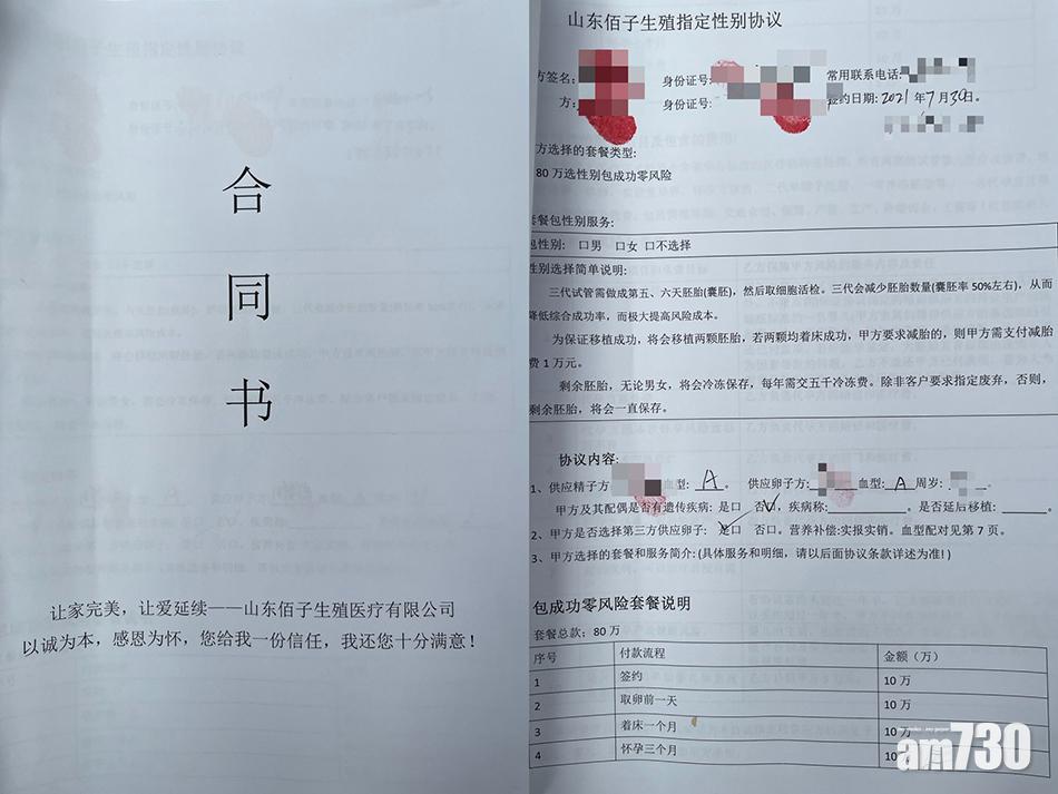 義工臥底山東佰子生殖醫療公司,取得一份合約作為該公司犯案證據。(互聯網)