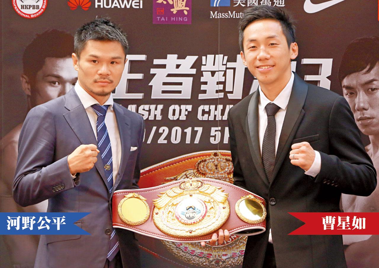 「神奇小子」曹星如(Rex)將於10月7日在會展舉行的《王者對決3》,與日本的前WBA超蠅量級世界拳王河野公平交手,爭取職業生涯22連勝。兩人昨一同亮相在萬麗海景酒店舉行的發布會,河野豪言可在9個回合內KO星如,Rex則稱要冷靜地應付強敵。