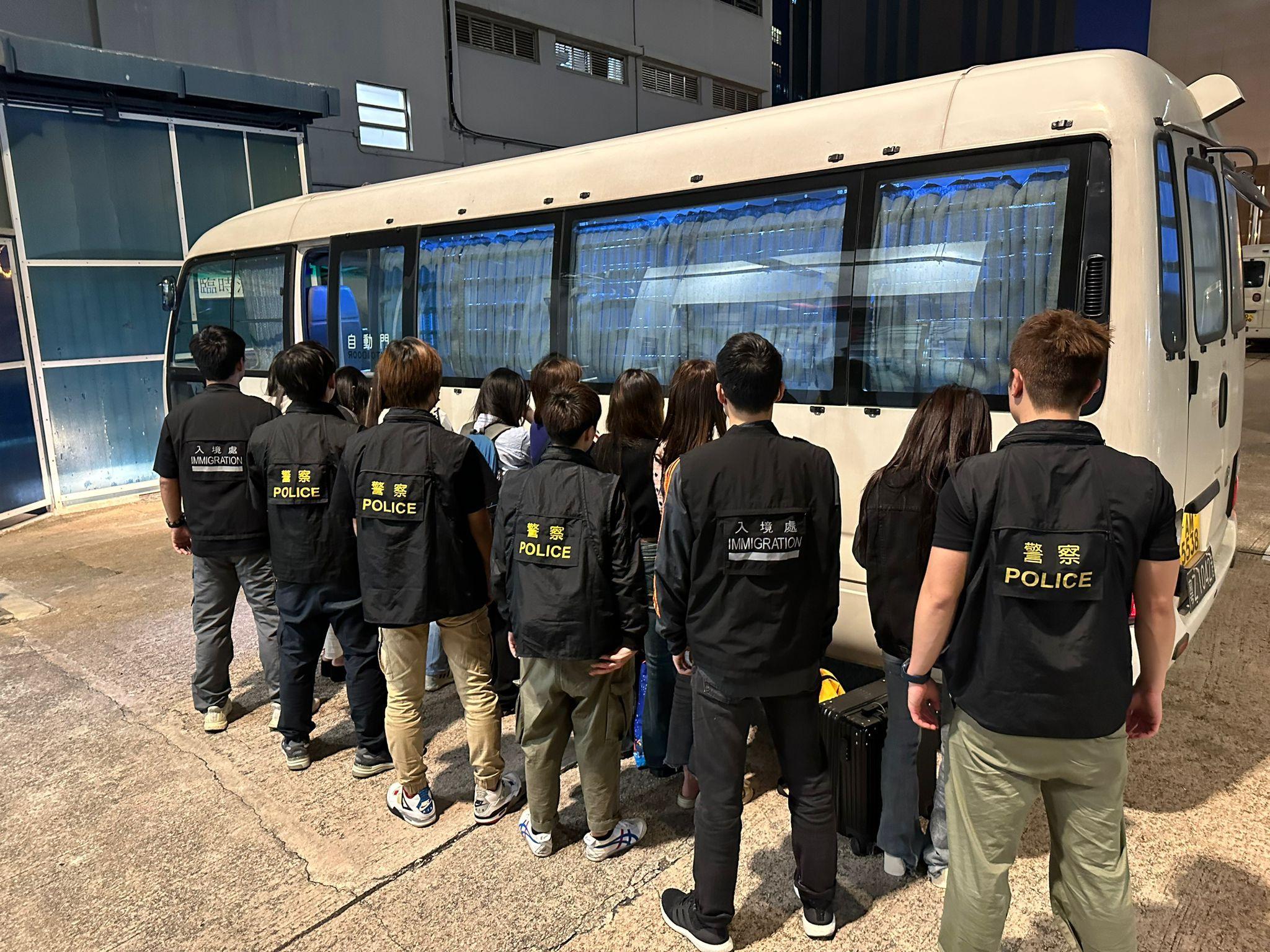 油尖警區聯同機動部隊及相關部門人員,昨日(14日)展開代號「冠軍」(CHAMPION)暨「烽火」(FIRESTORM)的打擊非法入境者和非法勞工及掃黃行動,突擊搜查區內多個地點,共拘捕30人。行動中,人員拘捕13名內地女子、9名內地男子、3名非華裔女子、3名非華裔男子,以及2名本地男子,年齡介乎23歲至55歲。他們分別涉嫌「非法入境」、「違反逗留條件」、「僱用非法勞工」及「未得授權在香港接受僱傭工作」等。所有被捕人現正被扣留調查,部分被捕人稍後將交由相關部門跟進。