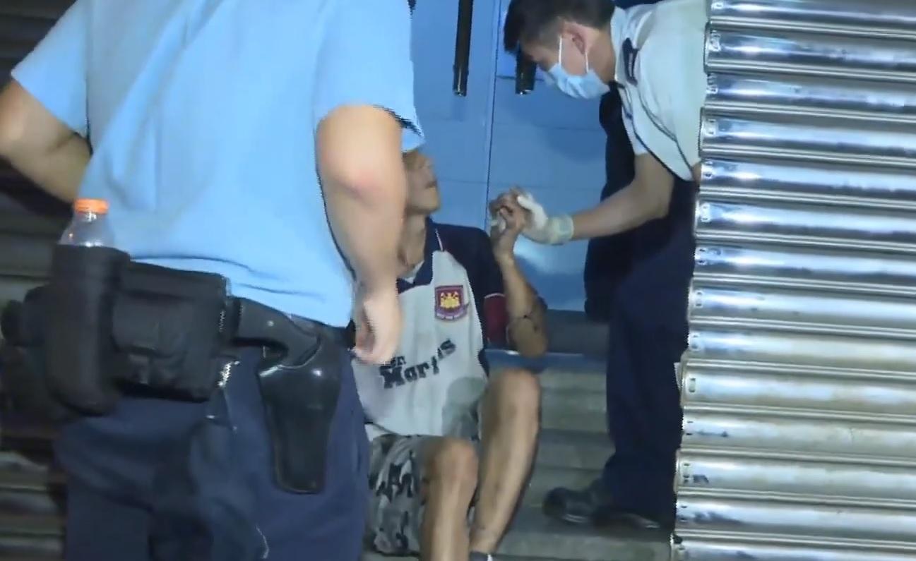 油麻地疑癮君子吸毒後跌倒 遭木板壓住 。(有線電視新聞截圖)