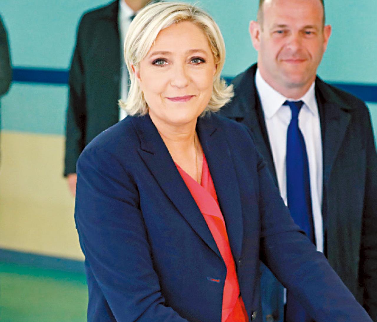 馬琳勒龐在國民陣線根據地埃南博蒙投票。(路透社)