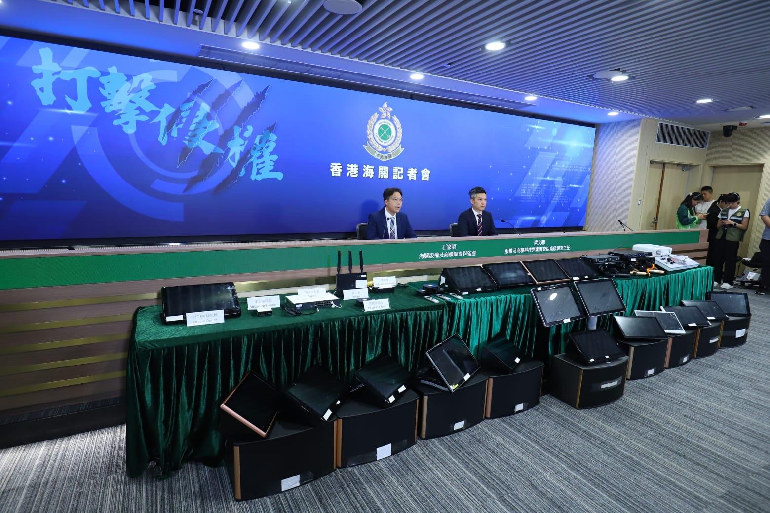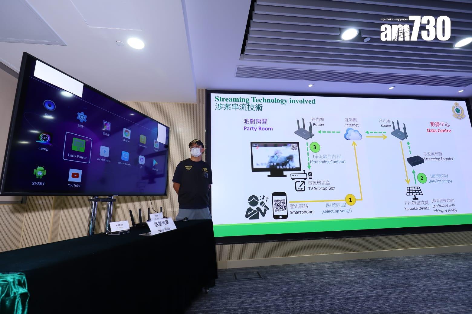 海關版權及商標調查科監督石家諺講述案情時表示,海關留意到有派對房間及食肆經營者提供侵權卡拉OK歌曲予顧客使用,經情報分析及深入調查,於本月2日至25日,行動動員100名關員,在全港多區包括銅鑼灣、觀塘、荃灣,另有葵涌、九龍灣及新蒲岡等突襲搜查31間派對房間及1間食肆,經營者涉嫌在業務過程中管有並提供侵犯版權的卡拉OK歌曲,檢獲39套載有懷疑侵權卡拉OK歌曲及及歌曲播放器、4套載有疑侵權的電子遊戲的電子遊戲機,以及一批影音器材設備及網絡器材,市值110萬元。卡拉OK播放機內預載了180萬首侵權卡拉OK歌曲。