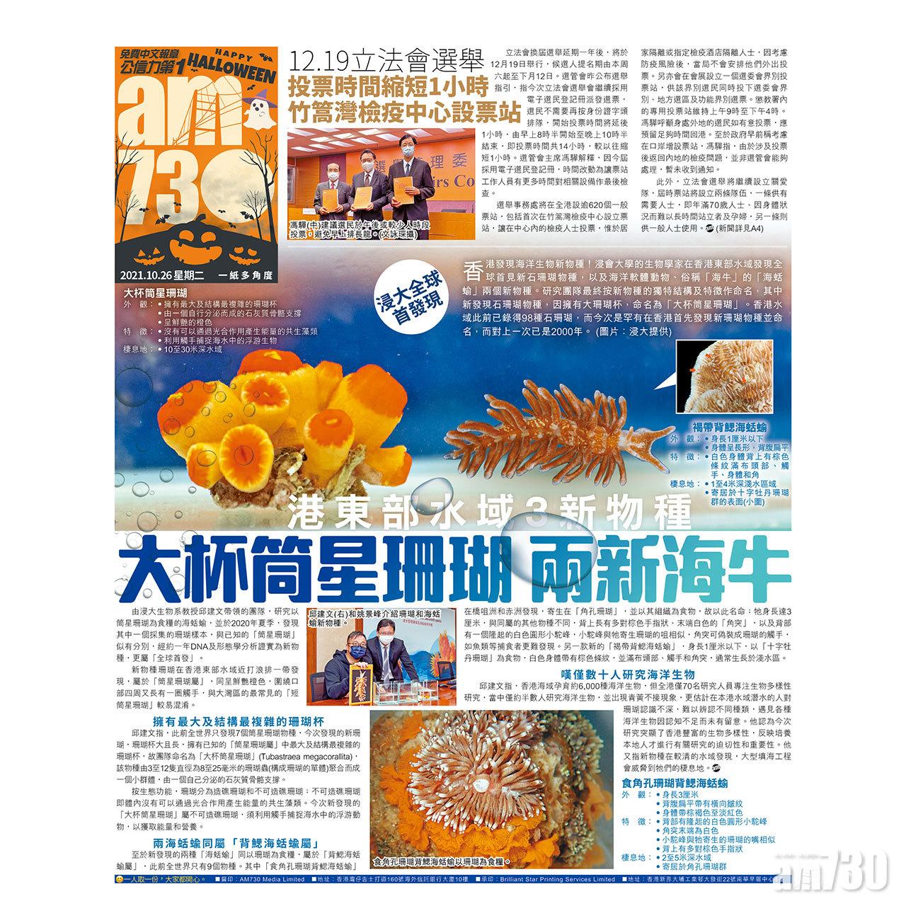 香港發現海洋生物新物種!浸會大學的生物學家在香港東部水域發現全球首見新石珊瑚物種,以及海洋軟體動物、俗稱「海牛」的「海蛞蝓」兩個新物種。研究團隊最終按新物種的獨特結構及特徵作命名,其中新發現石珊瑚物種,因擁有大珊瑚杯,命名為「大杯筒星珊瑚」。香港水域此前已錄得98種石珊瑚,而今次是罕有在香港首先發現新珊瑚物種並命名,而對上一次已是2000年。 (圖片:浸大提供)