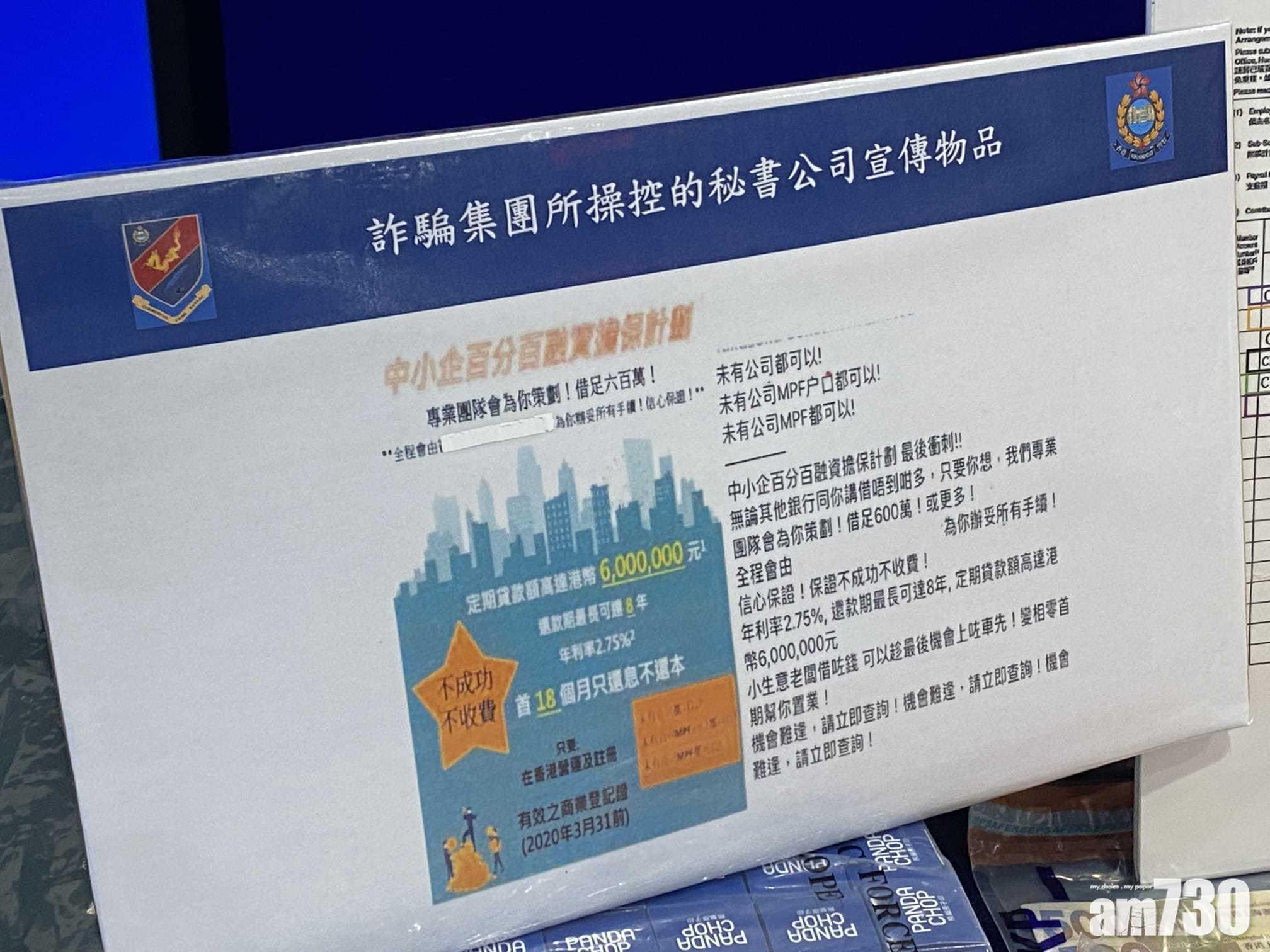 警方搗破一個詐騙集團,涉嫌透過多間空殼公司,使用虛假資料或文件申請百分百擔保特惠貸款,干犯「串謀詐騙」罪,涉款高達1.4億元。