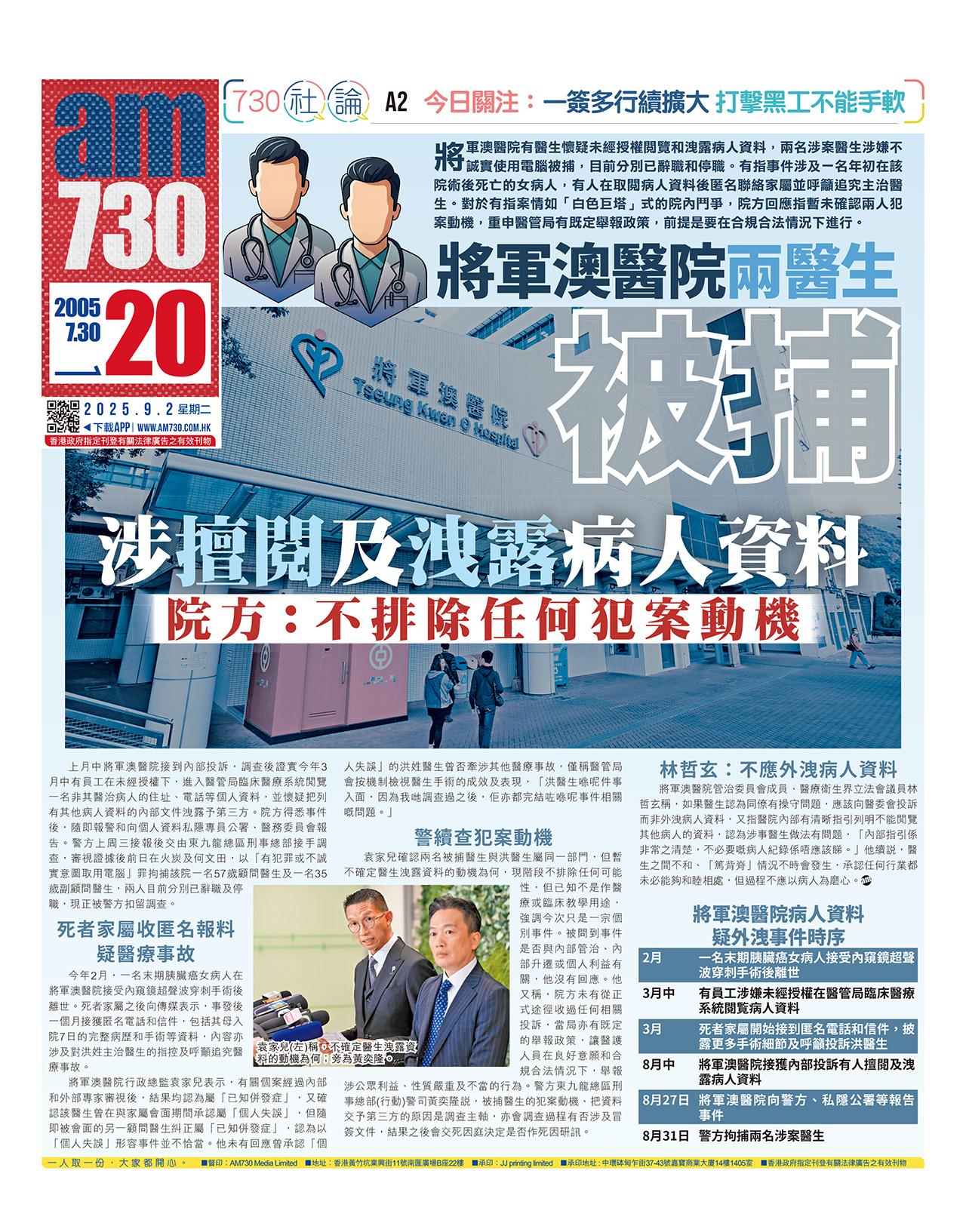 上月中將軍澳醫院接到內部投訴,調查後證實今年3月中有員工在未經授權下,進入醫管局臨床醫療系統閱覽一名非其醫治病人的住址、電話等個人資料,並懷疑把列有其他病人資料的內部文件洩露予第三方。院方得悉事件後,隨即報警和向個人資料私隱專員公署、醫務委員會報告。警方上周三接報後交由東九龍總區刑事總部接手調查,審視證據後前日在火炭及何文田,以「有犯罪或不誠實意圖取用電腦」罪拘捕該院一名57歲顧問醫生及一名35歲副顧問醫生,兩人目前分別已辭職及停職,現正被警方扣留調查。
