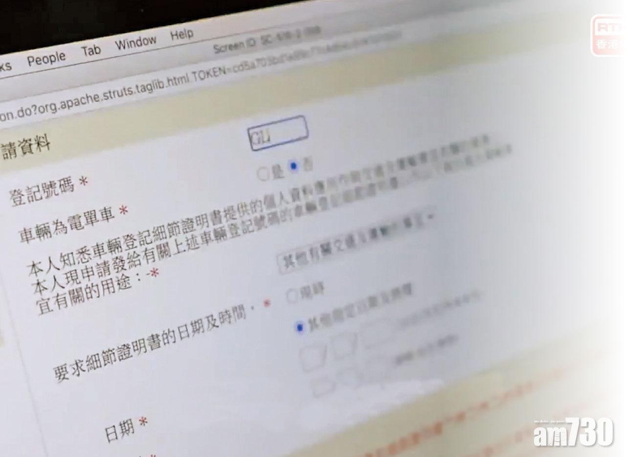 《鏗鏘集》以運輸署網上查冊系統調查。(片段截圖)