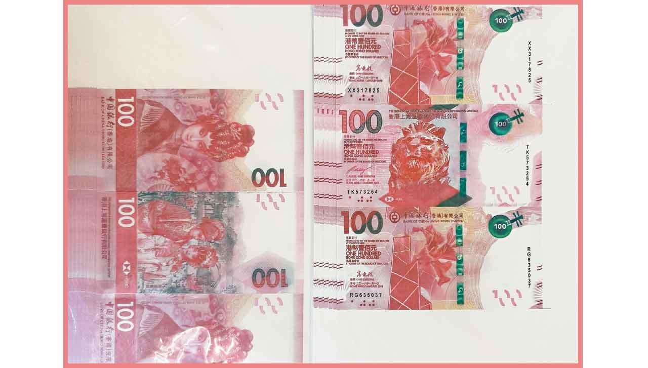 經初步調查,相信該團夥與上月多宗行使偽鈔案件有關,案件中犯案人多數以面值100或500元的港幣偽鈔支付的士車費。
