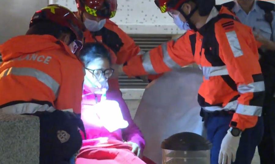 2名年齡分別28歲及38歲女住戶吸入濃煙不適,被送往明愛醫院治理。(有線新聞截圖)