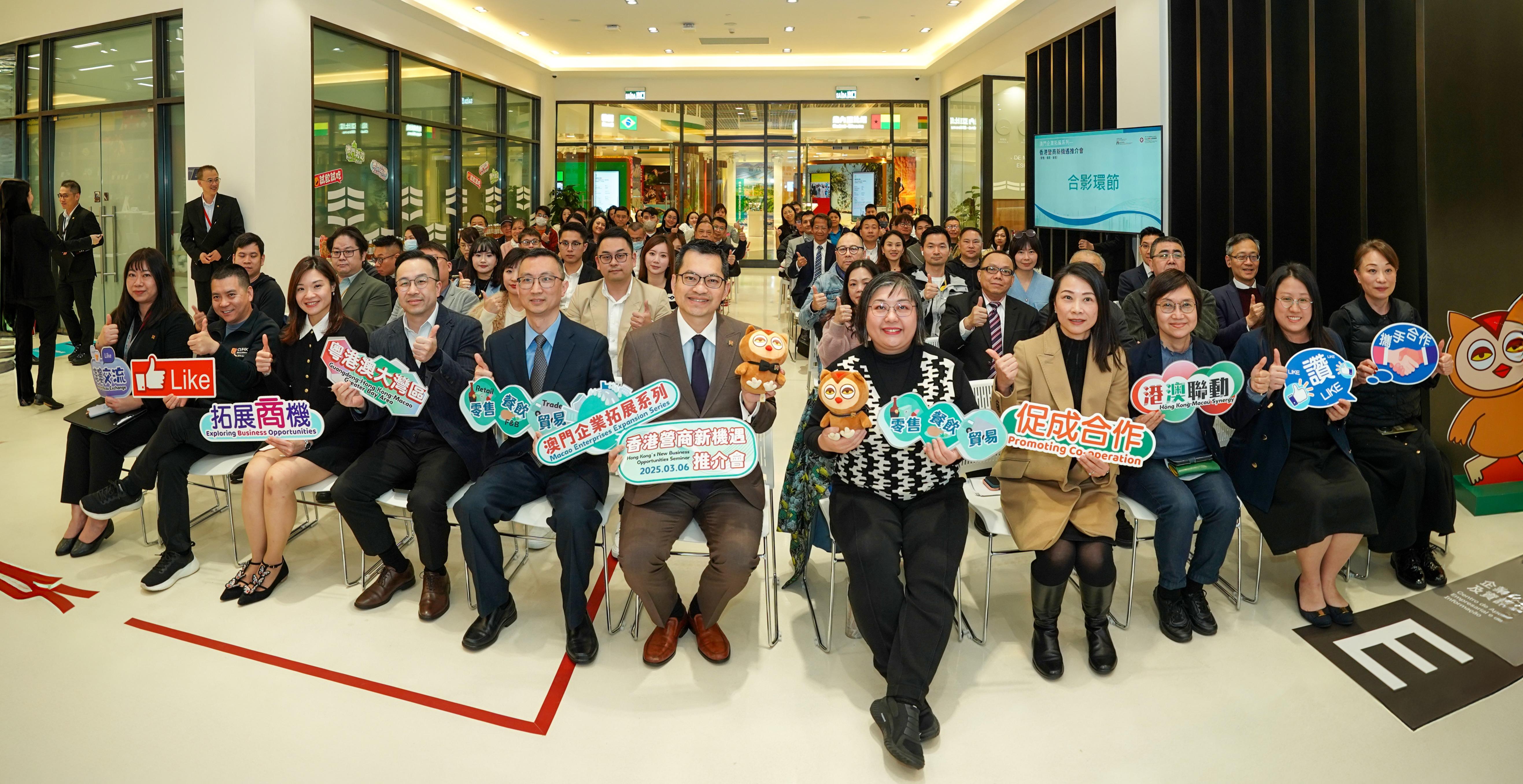 為促進港澳合作,投資推廣署昨日與澳門招商投資促進局(招商局)於澳門合辦投資推介會,向約90名澳門製造、品牌、零售、餐飲、出入口貿易企業及商會和協會代表,介紹香港營商現況及發展新機遇,尤其在零售、餐飲和貿易行業的新商機,鼓勵澳門企業利用香港的獨特優勢,拓展海外市場。