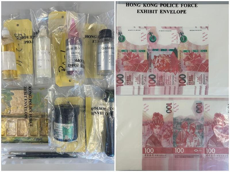 西九龍總區刑事部根據線報及經深入調查後,鎖定一個懷疑製造港幣偽鈔的犯罪團伙,昨日(2日)中午約1時在灣仔展開拘捕行動,共檢獲66張製作的面值100元的港幣偽鈔,以及有關製作工具及物料。
