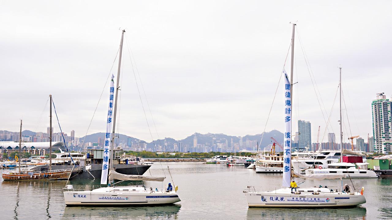 警方在海上的反詐騙宣傳。(陳奕釗攝)