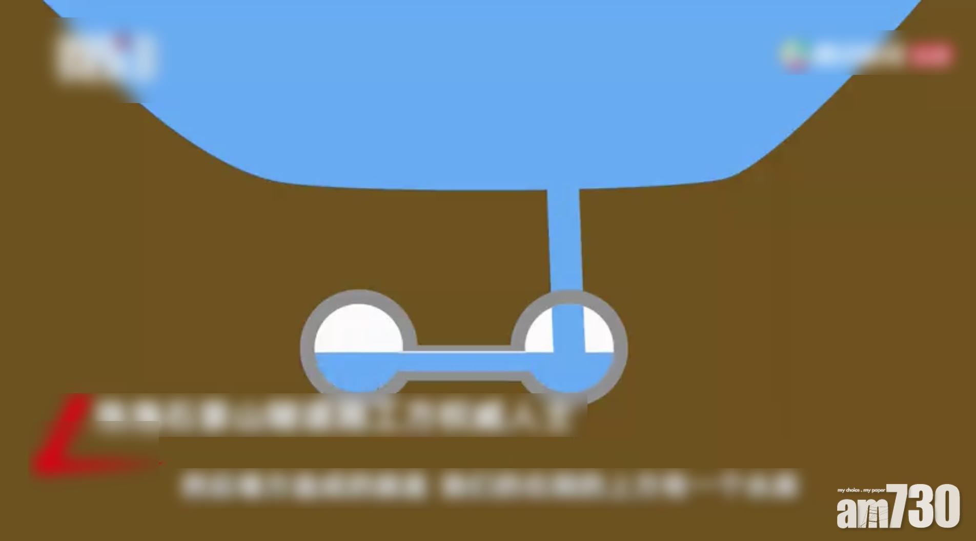右側隧道頂塌方,導致上方水庫的水流入隧道,再循橫向通道湧入左側隧道。(互聯網)