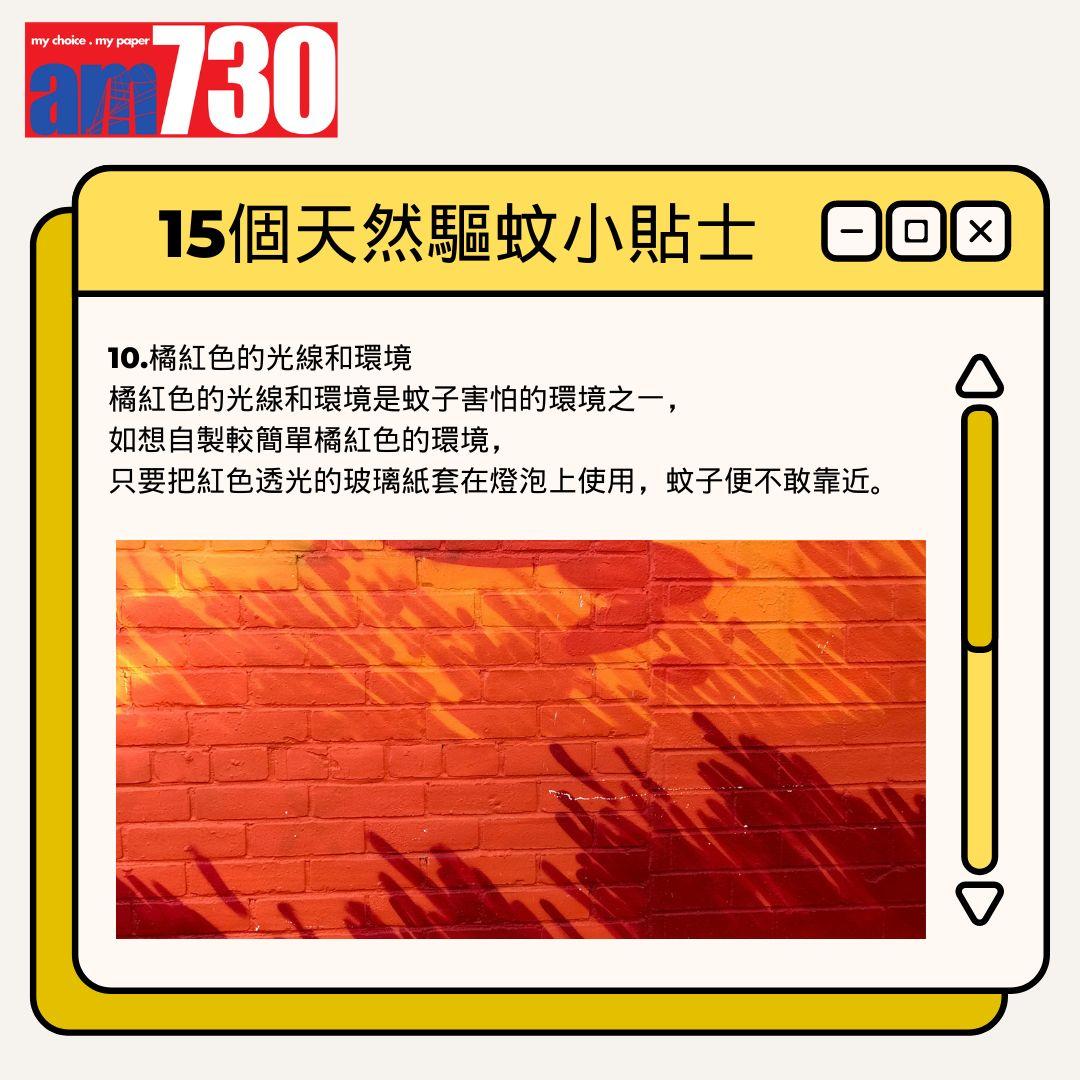 15個天然驅蚊小貼士丨注意個人衛生 15個天然驅蚊小貼士丨適當的衣服的穿搭法 15個天然驅蚊小貼士丨減少使用化妝品和香水 15個天然驅蚊小貼士丨善用天然的驅蚊產品 15個天然驅蚊小貼士丨擺放防蚊植物 15個天然驅蚊小貼士丨善用曬乾的柚子皮/橙皮/檸檬皮 15個天然驅蚊小貼士丨燃點咖啡渣 / 茶葉渣 15個天然驅蚊小貼士丨燃燒艾草驅蚊 15個天然驅蚊小貼士丨自製中藥驅蚊包 15個天然驅蚊小貼士丨橘紅色的光線和環境 15個天然驅蚊小貼士丨善用風扇及冷氣 15個天然驅蚊小貼士丨安全使用植物精油 15個天然驅蚊小貼士丨使用蚊帳 15個天然驅蚊小貼士丨自製糖水捕蚊瓶 15個天然驅蚊小貼士丨利用肥皂 / 洗衣粉減少蚊患