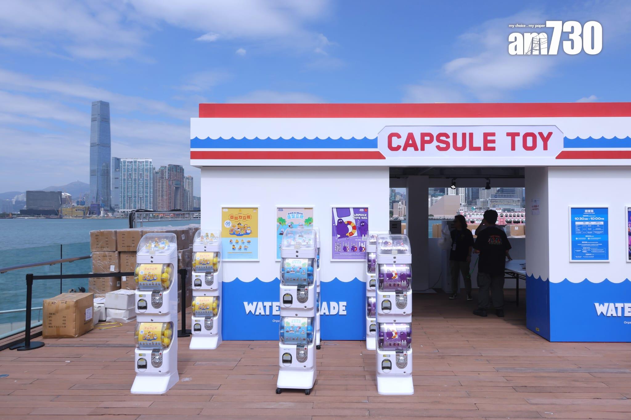 「維港海上大巡遊」今日揭幕,於金鐘添馬公園對開海域呈現4大人氣角色,分別是多啦A夢、芝麻街Elmo、滑嘟嘟及LABUBU的巨型海上充氣雕塑。