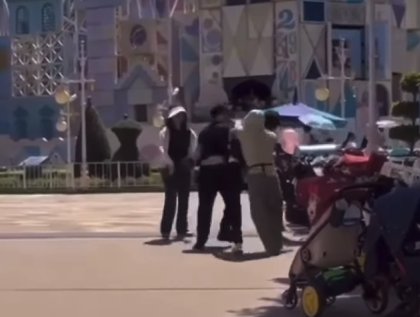 網上熱話|4名內地客迪士尼MMA混戰,有迪士尼工作人員見狀即分開兩人。(網上片段)