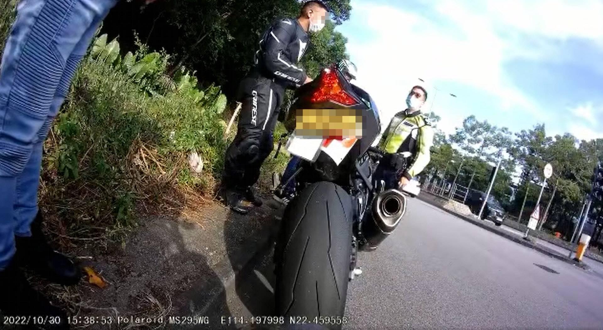 期間,一名交通鐵騎碰巧正在汀角路截查一輛私家車,見狀隨即登車追停,並召同僚到場增援。經調查後,發現駕駛帶頭電單車的光頭男司機為69歲退休人士,車隊中更有「P牌」新手司機。