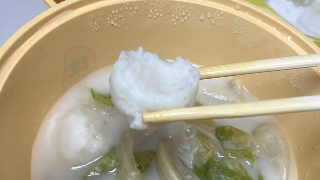 外賣米線驚見墨魚丸有缺損。(Facebook「中伏飲食報料區」圖片)