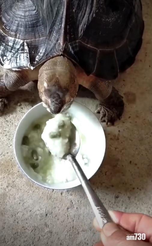 飼主溺愛寵物大條道理,內地網民分享「這世界上沒有奶奶養不好的寵物」,分享的短片是主人煮了粥,再一匙羹一匙羹飼養龜龜,而龜龜亦「開心地」大口大口食。