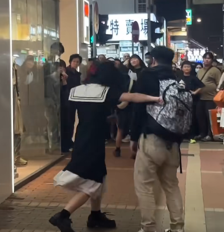 近日網絡瘋傳一段「MMA」影片,從片中可見,旺角豉油街荷李活商業中心外,有一對疑似情侶吵架,一名紮蝴蝶結的少女在影片開頭席地而坐,而男友打算扶起少女,但遭對方尖叫「走開」並推開。女方及後自行起身,並開始對男友拳打腳踢,情緒激動,拳踢打在男方身上時傳出「嘭嘭」聲,女子更三度「起飛腳」和除鞋擲向男友。